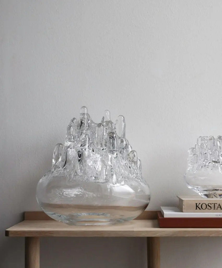 Made as a unique gift from Sweden to the Sydney Opera House (True Story), Polar from Kosta Boda was born from a love of light, nature, and ice. It's a votive candle holder, but it's also a glass sculpture and a beautiful design object. This iconic product from 1974 has been chosen from the archives. Polar in clear glass is mouth-blown at Kosta Glassworks in Sweden. Design by Göran Wärff.