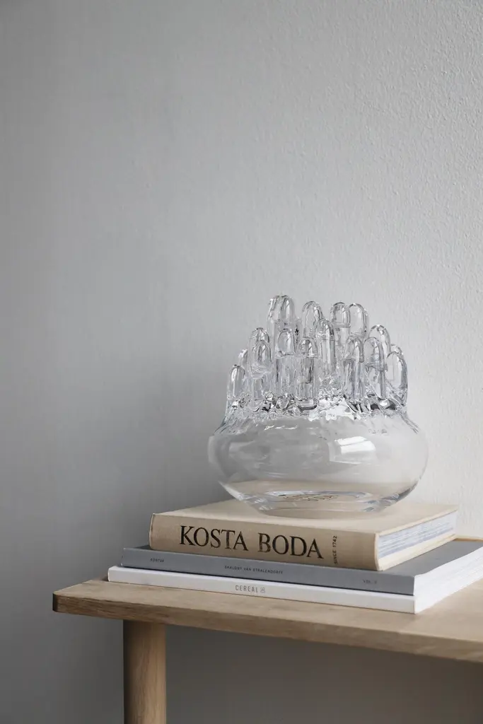 Made as a unique gift from Sweden to the Sydney Opera House (True Story), Polar from Kosta Boda was born from a love of light, nature, and ice. It's a votive candle holder, but it's also a glass sculpture and a beautiful design object. This iconic product from 1974 has been chosen from the archives. Polar in clear glass is mouth-blown at Kosta Glassworks in Sweden. Design by Göran Wärff.