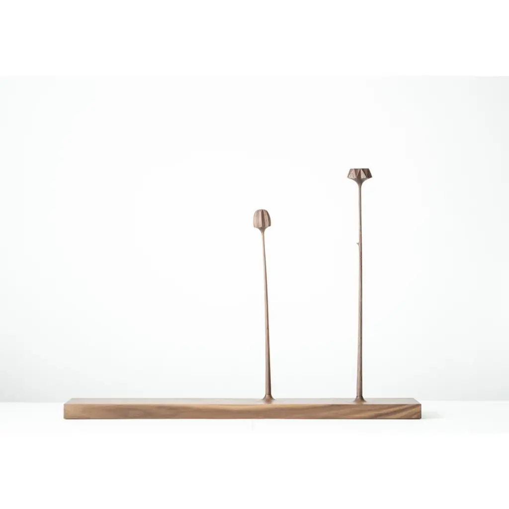 The Kukkii Bud sculpture by the Finnish master cabinetmaker Antrei Hartikainen is part of a collection of unique wooden flowers and mushrooms standing on a slender stem, creating a delicate ambience in smaller or larger groups. These handmade sculptures may resemble each other to varying degrees, but two exactly identical pieces can't be found – the final look of your sculpture will thus only be revealed when you receive it. The Kukkii ("blooming") series depicts the moment of calmness and freedom one can experience in nature. The wooden sculptures can be placed on a floor, table or windowsill, or mounted on the wall as a decorative floating shelf. Kukkii sculptures are handmade in Finland with different types of crafting techniques, and they won the Product of the Year 2017 award at the Finnish design gala Muoto.