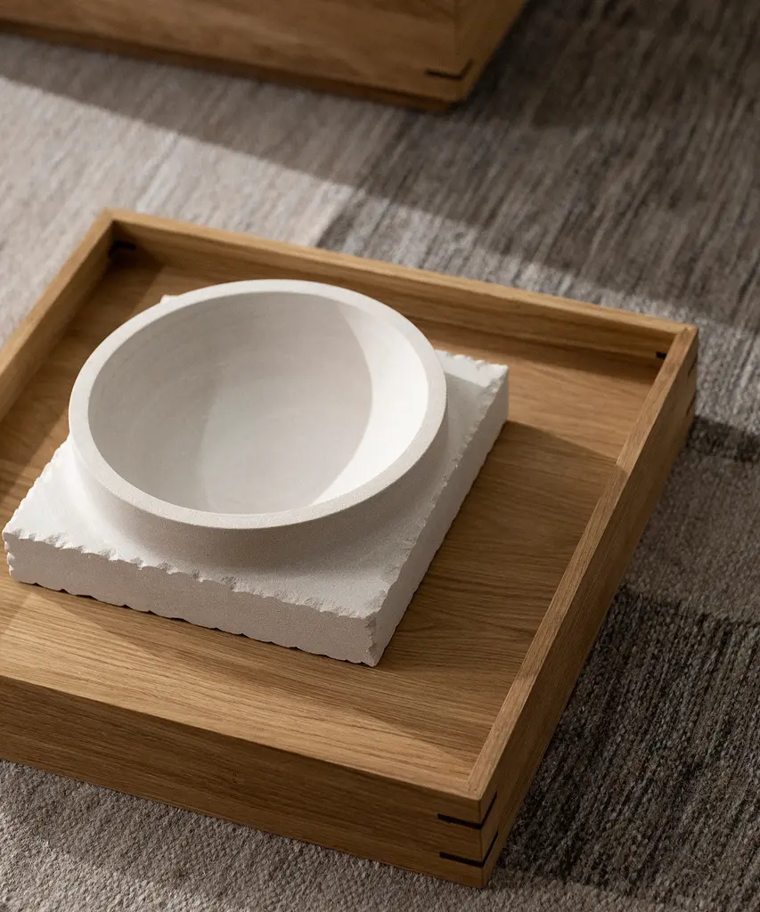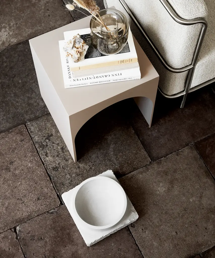 Crafted in smooth sandstone the Lacuna Shape is a graceful and sculptural desk piece. The light grey sandstone is stunning on its own and the sleek finish of the bowl gives the Lacuna Shape a luxurious feel. The sides of the Lacuna Shapes square formed base are cut roughly deliberately leaving chip marks around its edges. The contrast between the neat and smooth sandstone bowl and the fragmented base is key to the Lacuna Shapes final expression. The sandstone isn't food-safe, but the vessel still offers you the opportunity to store keys, pencils, or smaller design objects and accessories for display in the most stylish way possible. The word "Lacuna" is best translated into "the unfilled space". With the Lacuna Shape from Kristina Dam Studio, you will get a sculptural centerpiece to fill out that gap in your home in the most decorative way. Kristina Dam Design Studio offers a variety of furniture, sculptures, and accessories. We call our design approach "Sculptural Minimalism". We focus on simple, uncomplicated, and durable designs for the modern home interior. Most products are made within the EU from genuine, honest, and solid materials.Designed by Kristina Dam Studio in Copenhagen, Denmark.
