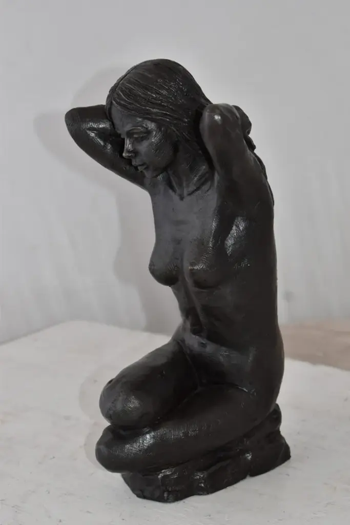 Lady Sitting Nude Posing Naked For Artist - Bronze Statue Size: 7" X 8" X 13"h