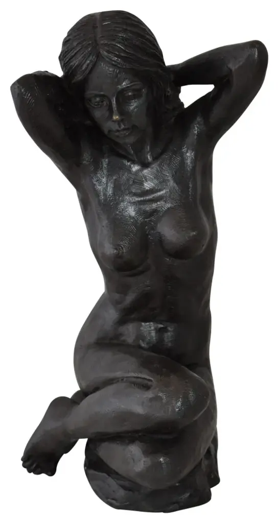 This charming bronze statue depicts Beautiful Young Lady sitting nude mounted on a bronze base. This very fine and unique abstract was casted using the ancient old Lost Wax Method with brown patina finish for preservation, handmade, from pure bronze. This beautiful bronze-cast statue will be a valuable addition to any area of the home, office, patio, or garden. Size: 7"L x 8"W x 13"H. Weight is: 8Lb