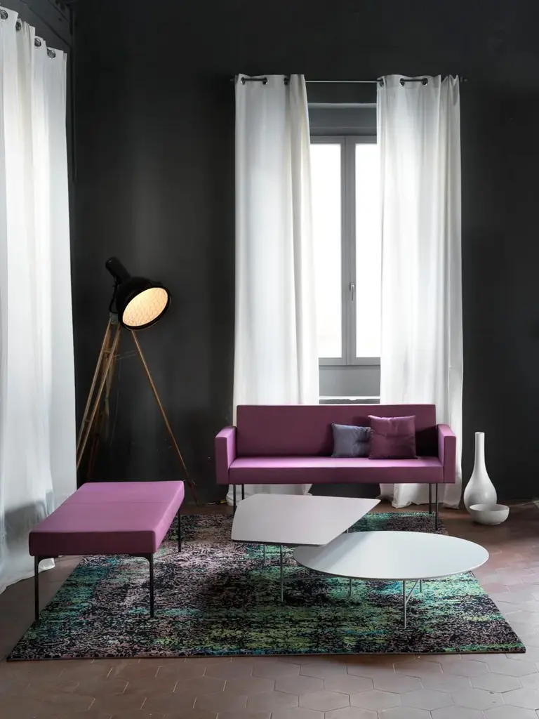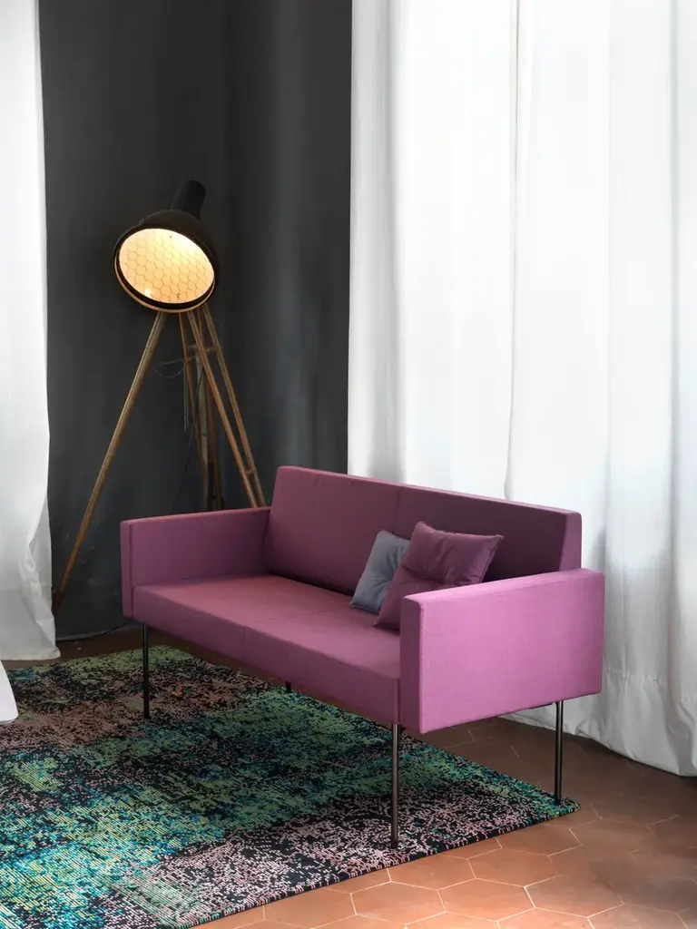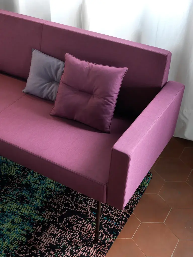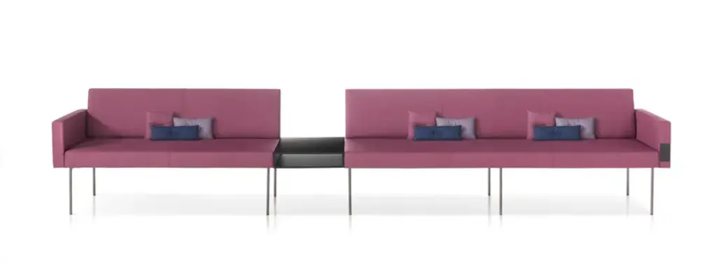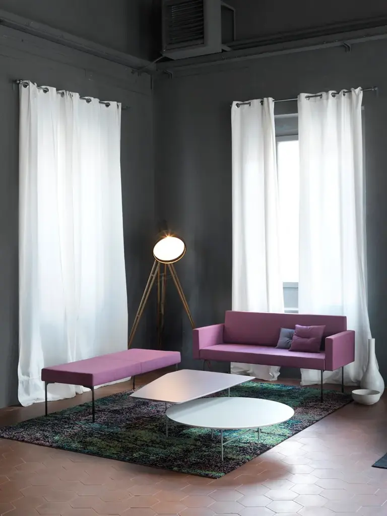 Laguna is a sofa characterized by its thin lines and different, sinuous shapes. Simplicity, dynamism and versatility emerge as traits of a modular system that can be endlessly coordinated, combined and reconfigured to produce creative and light compositions as if they were sculptures. With its ability to easily communicate with corners and pillars, Laguna is a perfect minimal ecosystem for waiting areas and contract areas of the contemporary world. It is available in the 2 or 3 seater version, with or without armrests, linear or curved. The curved model is available in two sizes. It is possible to accessorize the sofa with additional central or side tables.