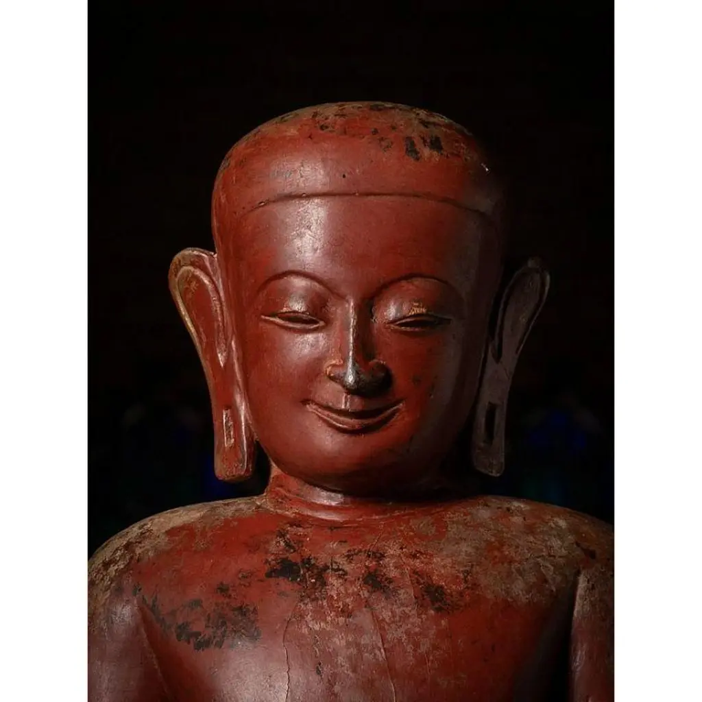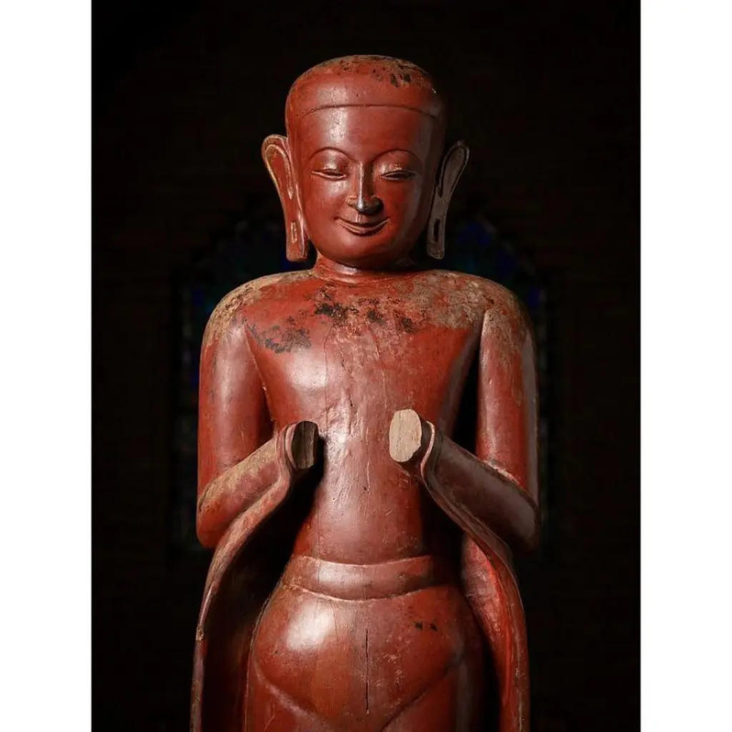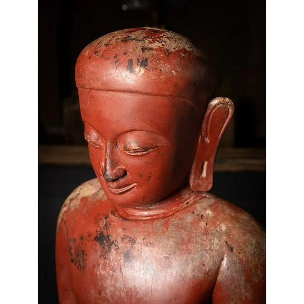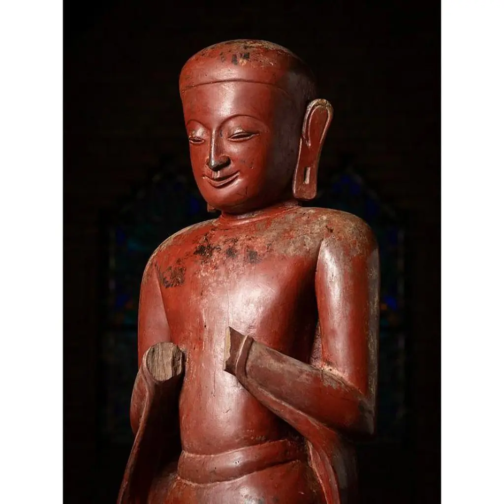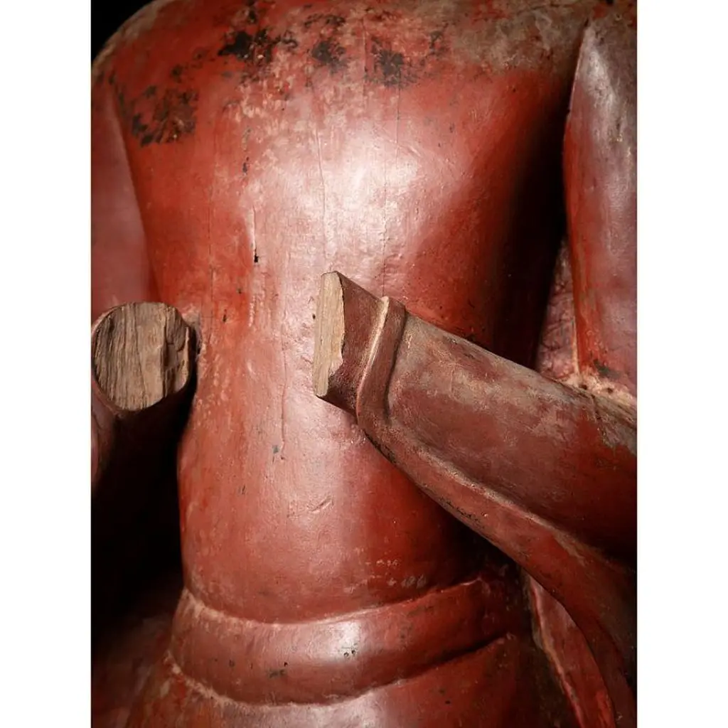 Large 17th Century Wooden Burmese Monk Statue From Burma