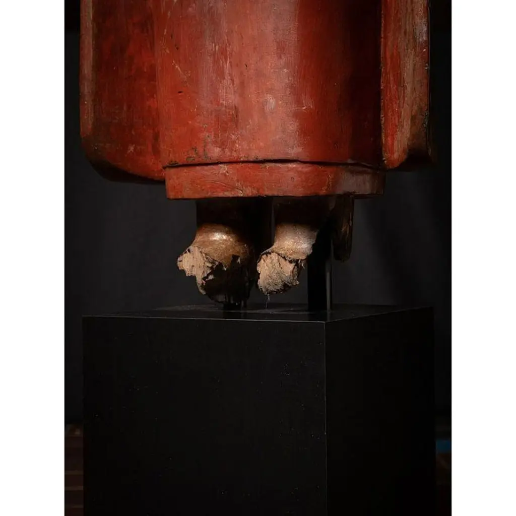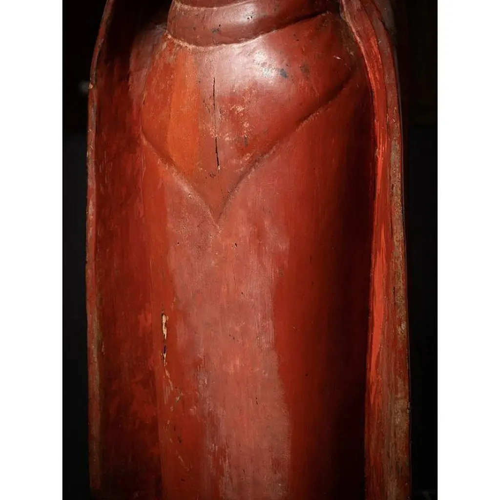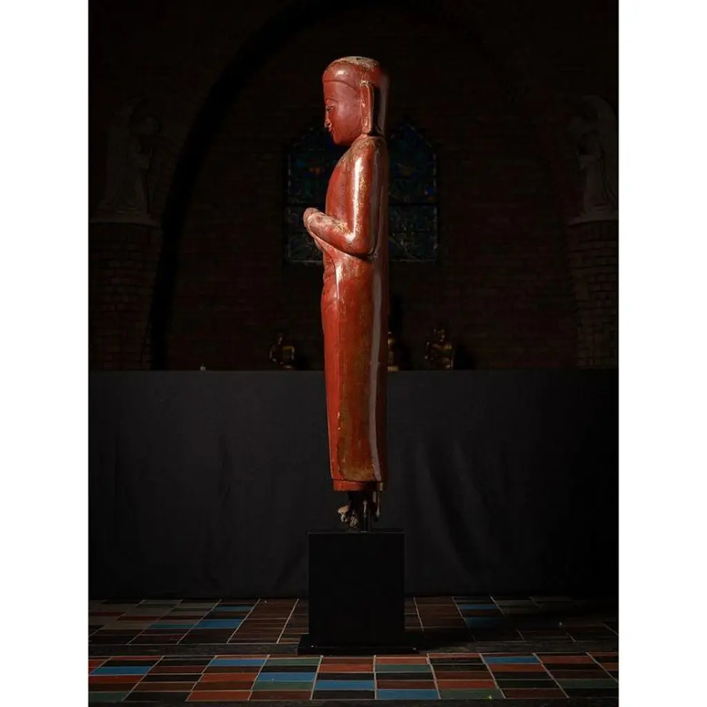 Material: wood180 cm high 43 cm wide and 34,5 cm deepWith traces of 24 krt. gildingAva styleNamaskara mudraOriginating from Burma17th century.