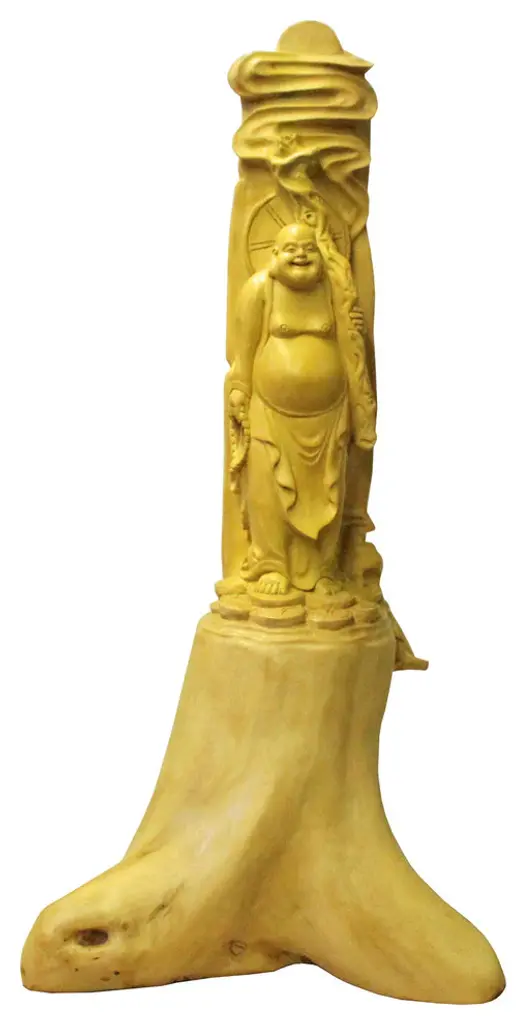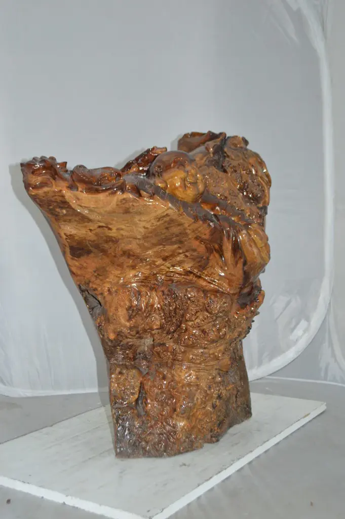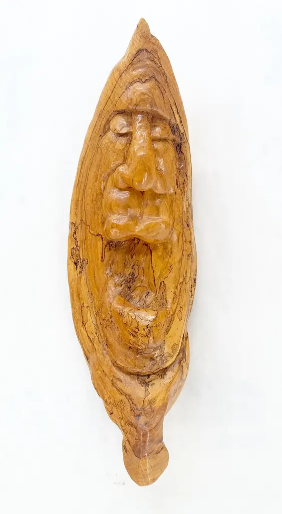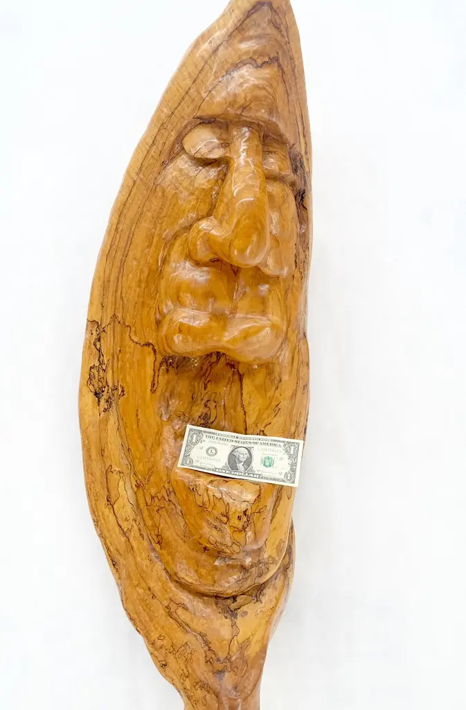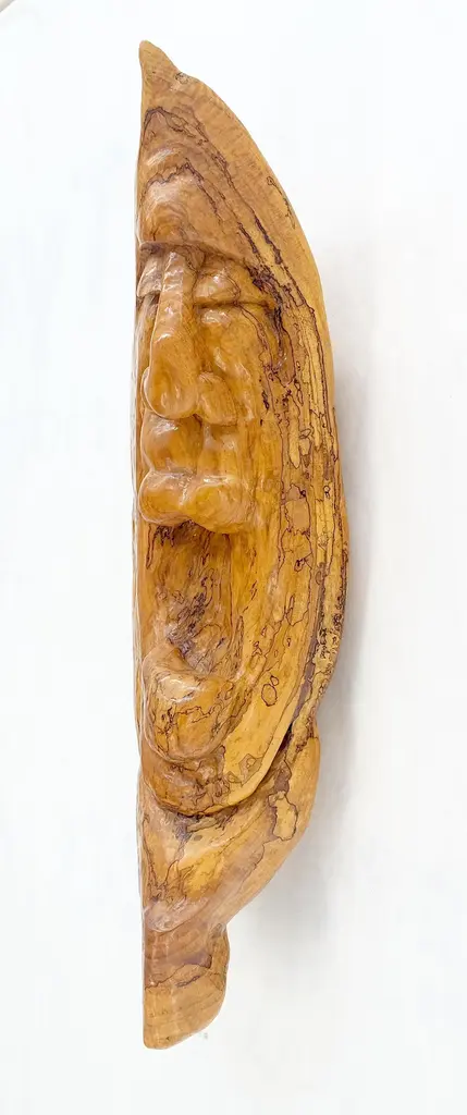 Large 40" Tall Carved Lacquered Solid Teak Moon Face Wall Hanging Sculpture NICE.The material is some sort of exotic golden tone high density wood.