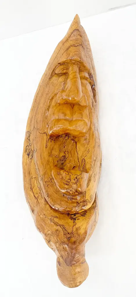 Large 40" Tall Carved Lacquered Solid Teak Moon Face Wall Hanging Sculpture Nice
