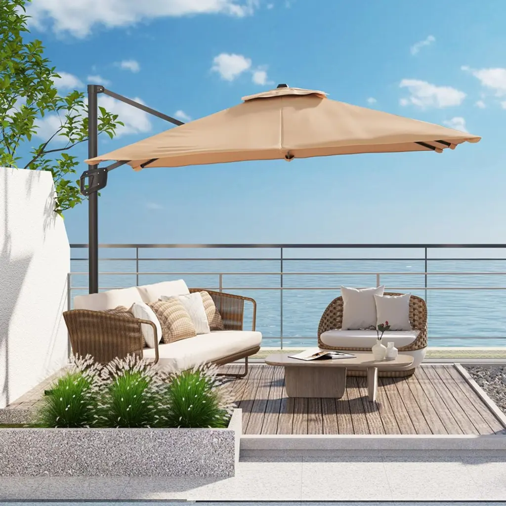 Large Cantilever Patio Umbrella 10' X 10' Offset Outdoor Umbrella With 360-degree Rotation, Uv Protection, For Garden, Patio, And Poolside,tan