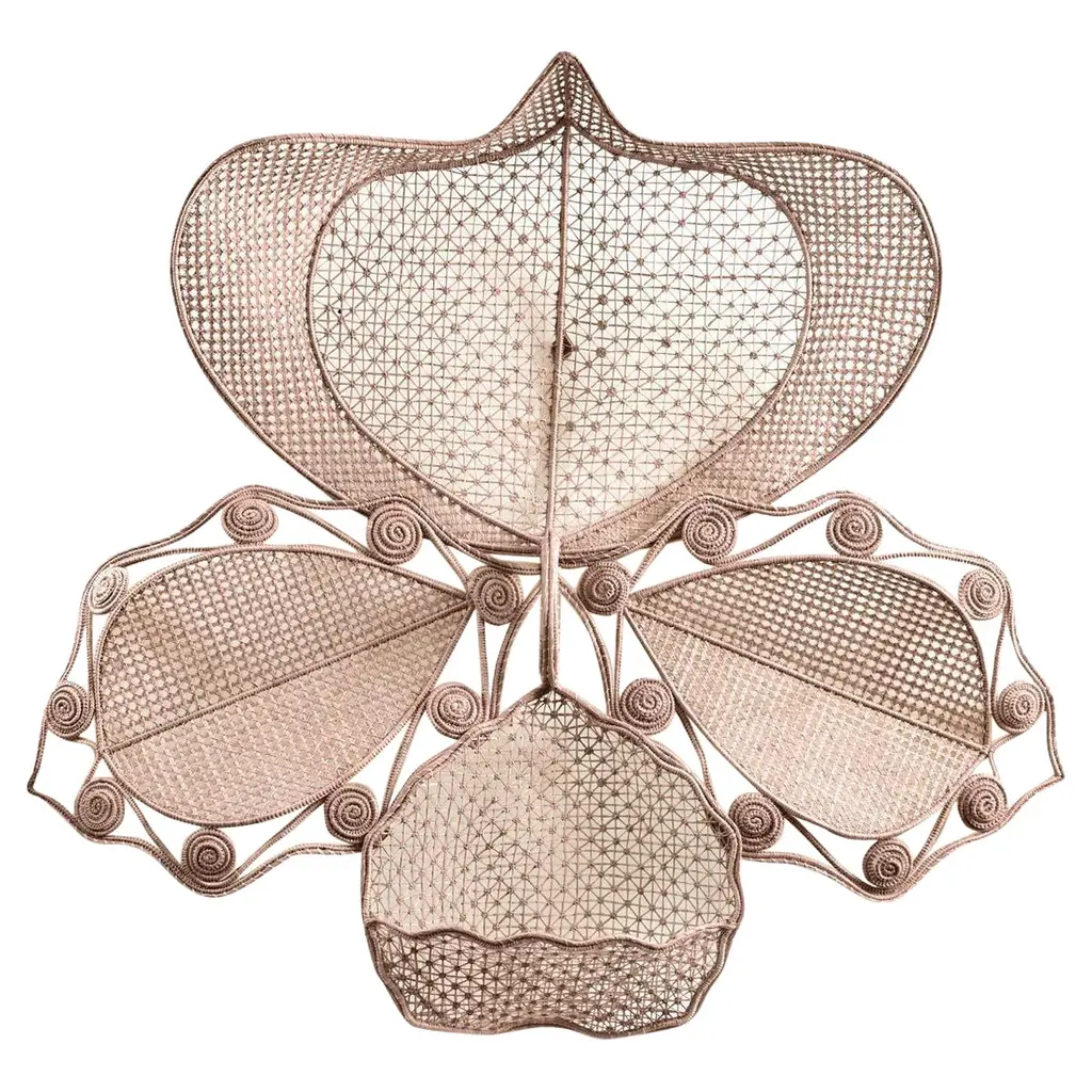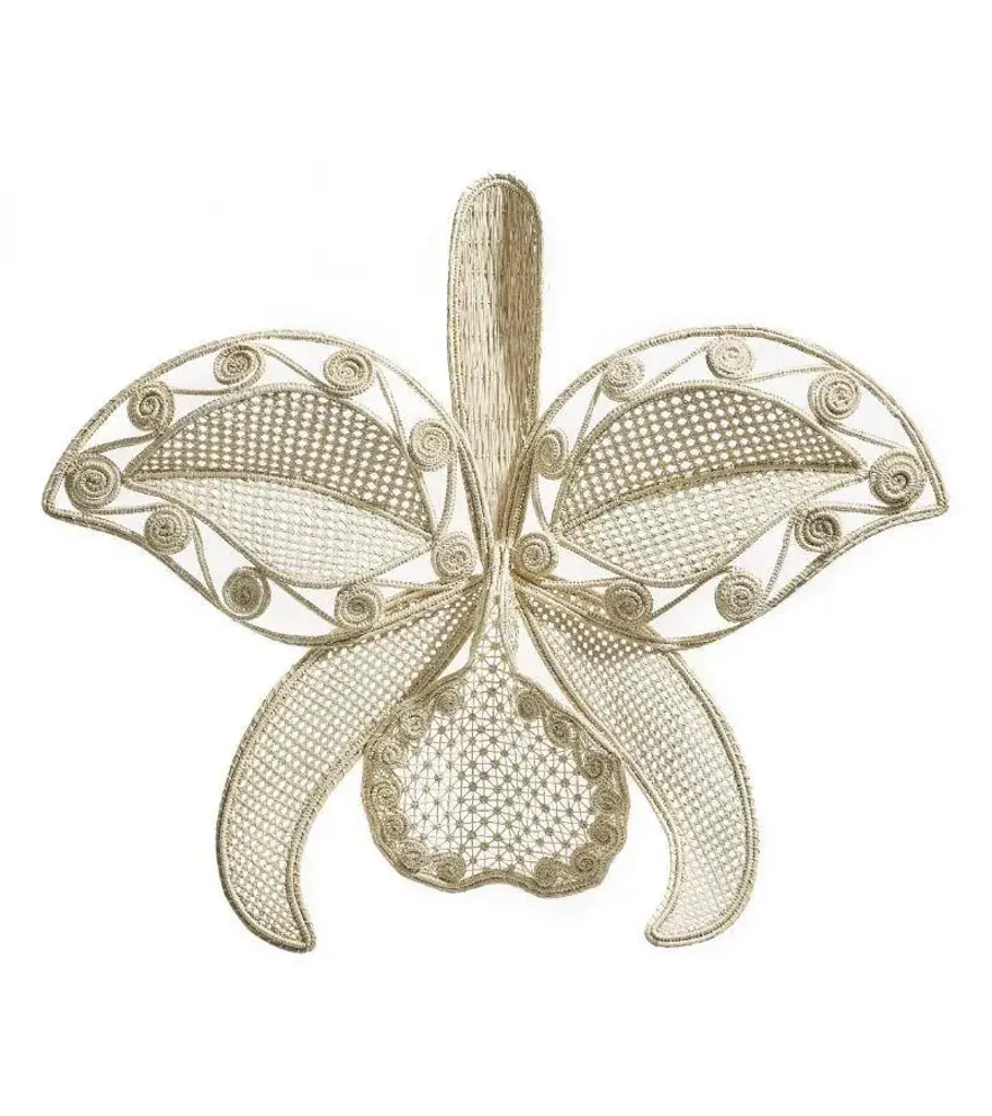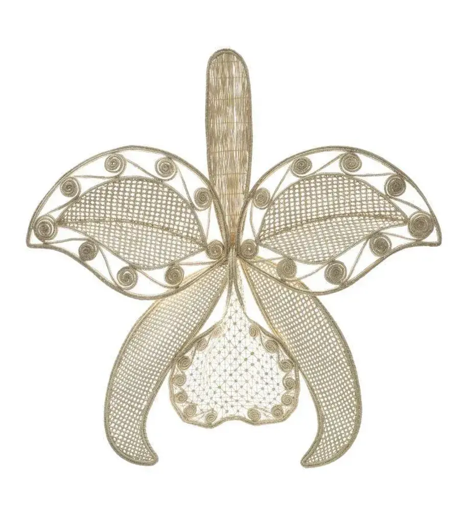 Large Cattelia by Cristina Celestino. Materials: Fibers from Jipi palm leaves fibers. Technique: Hand-woven with natural fibers in Colombia. Natural dyed. Dimensions: W 80 x H 80 cm