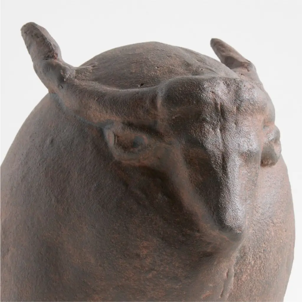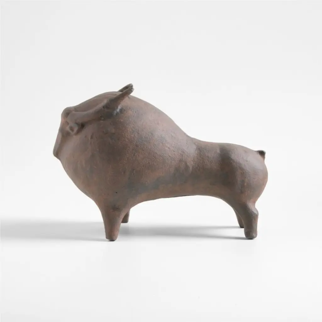With its exaggerated proportions, our buffalo sculpture looks as much like a work of modern abstract art as it does a relic of prehistoric times. Cast aluminum shapes the prairie icon, hand-finished by skilled artisans in warm brown with light texturing to evoke the bison's wooly coatand give it the look and feel of a found object or flea market treasure. A strong presence on a desk or bookshelf, the large buffalo sculpture also charms on a side table, fireplace mantel or entryway console.