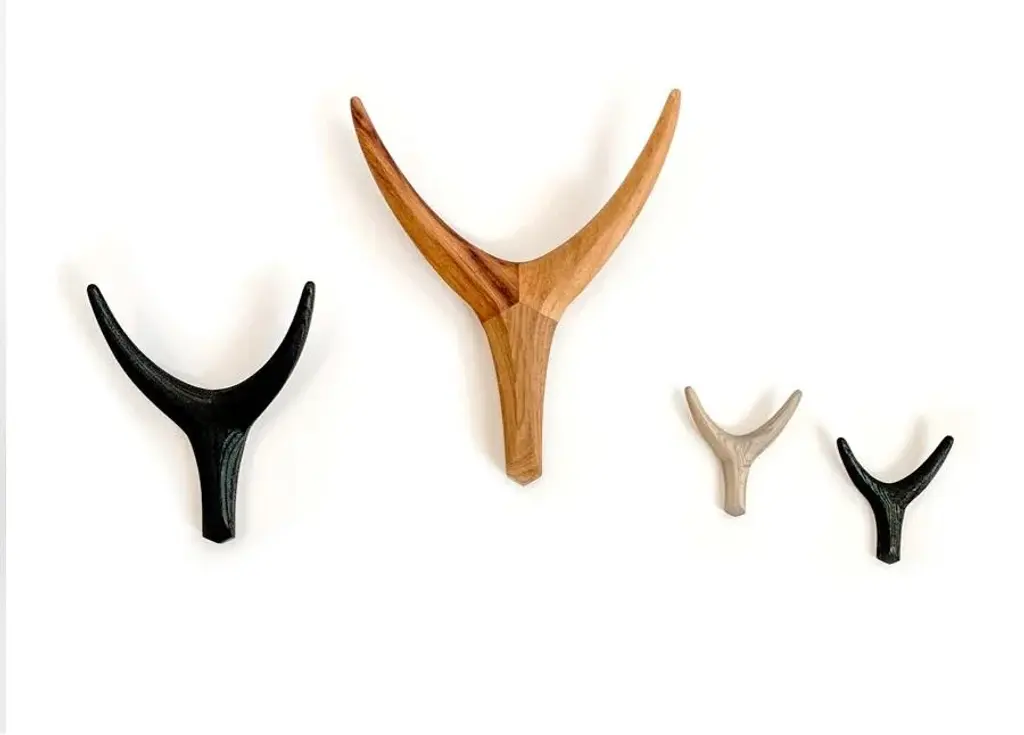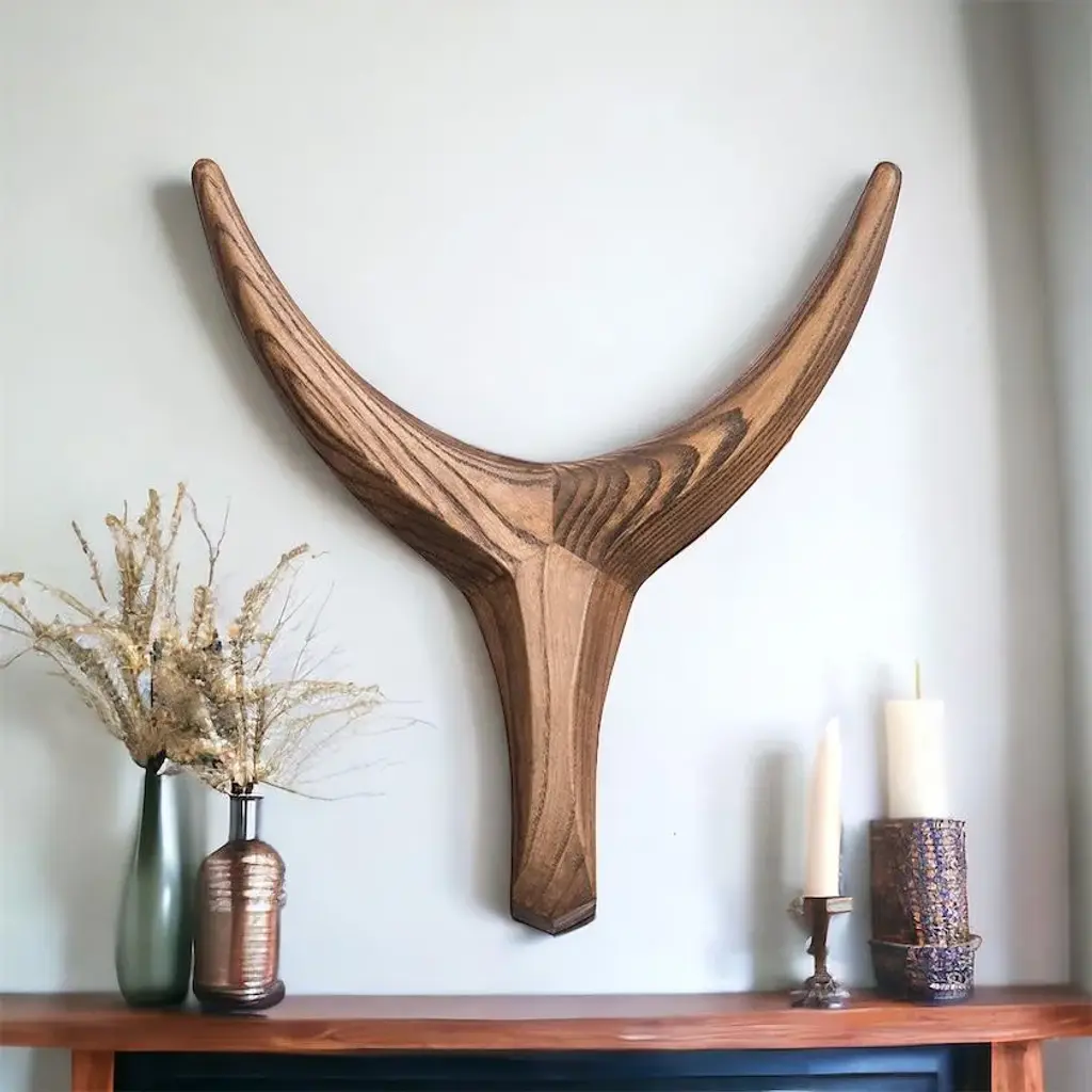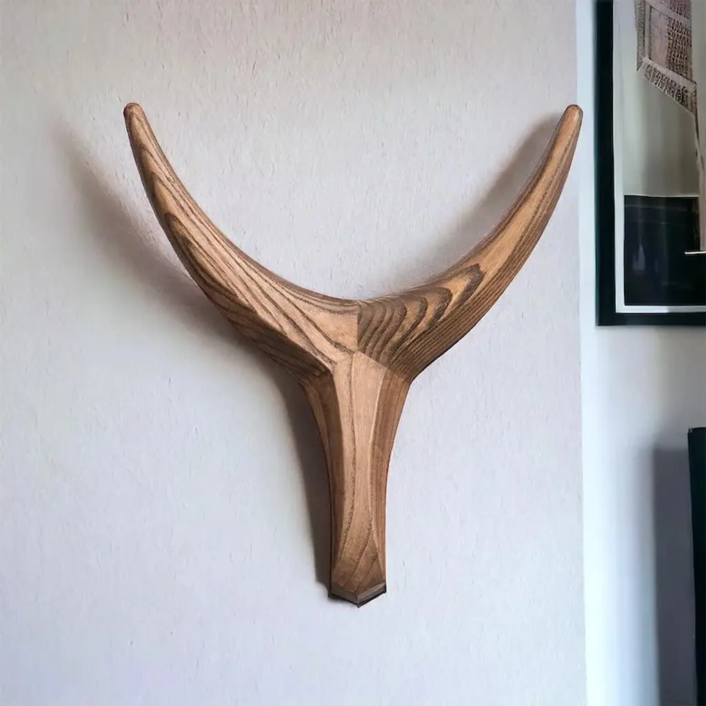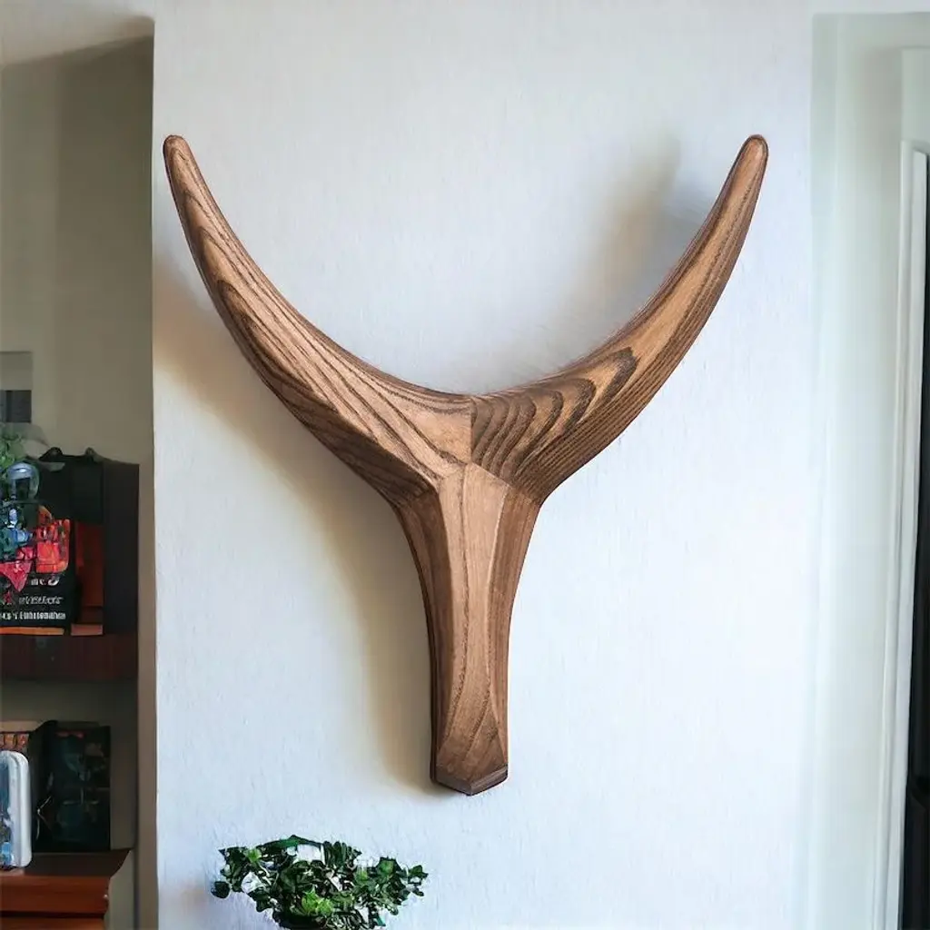 The Nguni head was formed around the concept of the indigenous Nguni cattle that wanders the coastline of South Africa. The Nguni head can be used as wall art or as a wall hook - buy all 3 sizes, or just one individual piece. Available in Small, Medium and Large. Also available in Clear oil, Black and Ash Ligth Grey The Nguni head was formed around the concept of the indigenous Nguni cattle that wanders the coastline of South Africa. This piece can be used as wall art or as a wall hook. Buy all 3 sizes or one individual piece. ::: Available in Small, Medium, and Large ::: Dimensions: Large: L: 26'' x W: 20'' x H: 10" Medium: L:18'' x W: 15" x H: 3" Small: L: 9'' Wx L: 7.5'' x H: 1.5" ::: Made from Iroko wood with Black ::: Features a hidden metal hook in the back for easy hanging ::: Made in South Africa ::: Available in Ash Light Grey, Clear and Black The Nguni head can be used as wall art or as a wall hook - buy all 3 sizes, or just one individual piece. Available Sizes: Small, Medium and Large. Available Colors: Black, Ash Light grey & Clear. Nguni Head Wall Decor Size: Large: L: 26" x W:21" x H:10" Color: Iroko Black Made in South Africa Nguni Head Ash Black Iroko | Animal Head Wall Decor| Handmade Farmhouse Decor Features a hidden metal hook in the back for easy hanging