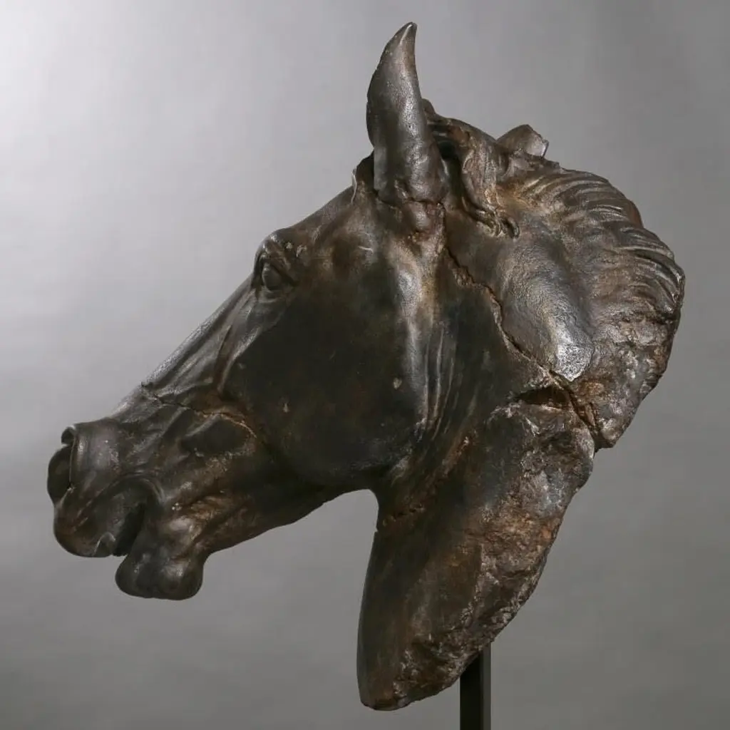 Large Sculpture Of A Black Horse's Head, Large Size.