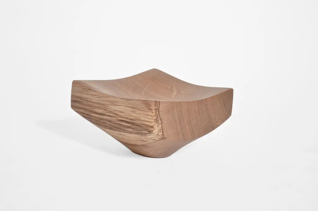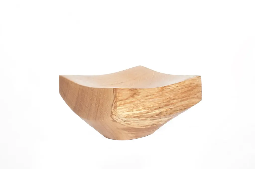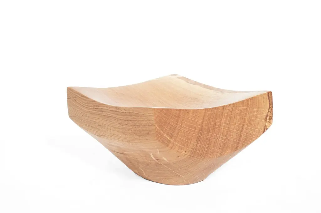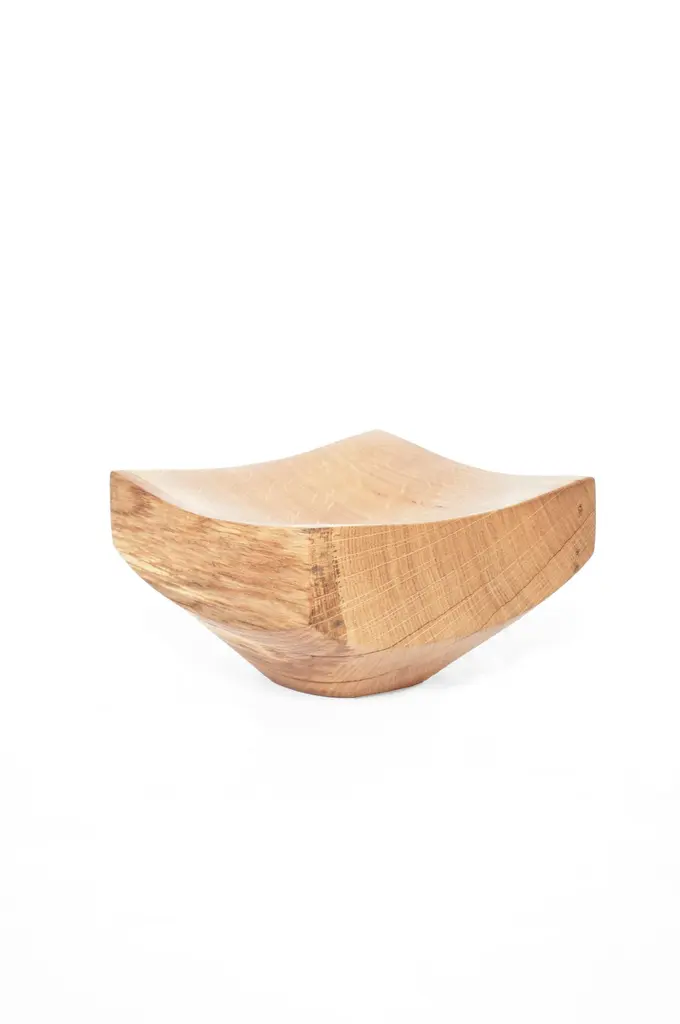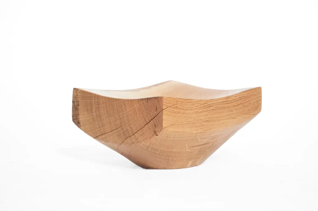 Large vessel 2801 by Jörg PietschmannDimensions: D 18 x W 20 x H 11 cm Materials: oak. Finish: polished oil finish.Also available in small. In Pietschmann’s sculptures, trees that for centuries were part of a landscape and founded in primordial forces tell stories inscribed in the memory of their fibers.The forms Jörg Pietschmann pares from ancient trees are extensive and astonishing with their physical presence, a combination of elegance and primeval nature. Pietschmann’s sculptures are monuments to the trees from which they derive.Being endowed with the ruggedness of primeval matter gives them a veritable vitality: figures that appear to have grown into the sculptural form of their own accord. But Pietschmann’s tangibly present bodies have undergone a considerable degree of metamorphosis.In order to generate these unique tree specimens, he examines the tree’s morphology and intrinsic inner map until the courses of its grain, of a curve, knots, and cracks concur with his projections. The exploratory process is accompanied by constant modification, giving at the start of each new piece no more than an intimation of the figure that will later emerge. In their completion, Pietschmann’s sculptures once more become a universal form.