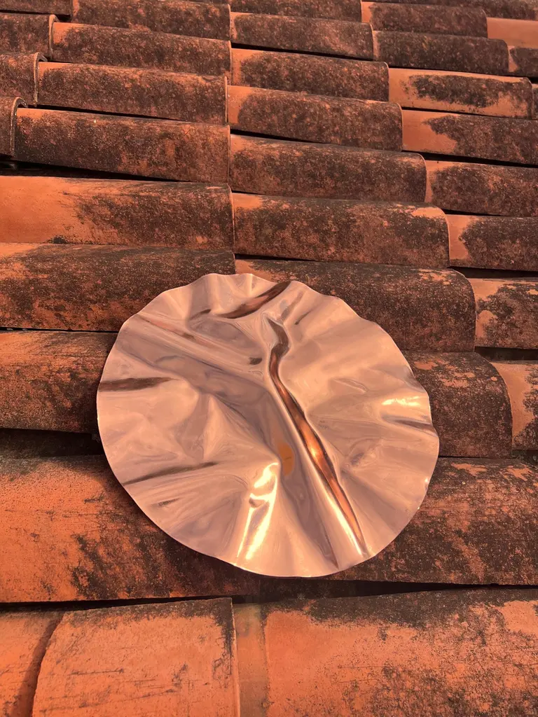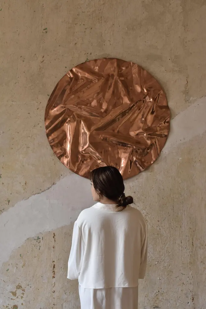 Large Wave Mar de Cobre Wall Sculpture by Aura CarpioDimensions: D 100 x H 5 cm.Materials: Copper. Weight: 12 Kg.Aura Carpio® (CDMX). Mexican industrial designer graduated and graduated from the Center for Industrial Design Research (CIDI-UNAM), with an academic stay at École Bleue Global Design (Paris, 2018) and a specialty in Museography and management of exhibition spaces by the Academy of San Carlos in the Faculty of Art and Design, UNAM (2021).In 2020, she created the eponymous firm Aura Carpio®, a contemporary sculptural design firm that serves as a tangible testimony of culture and acts as a dynamic entity that seeks to be a factor of social action through the study of the forms of copper and natural stones such as marble and natural elements that inhabit Mexican regions. The exploration and search for traditional and new techniques has been the trigger that has led to the creation of her designs.