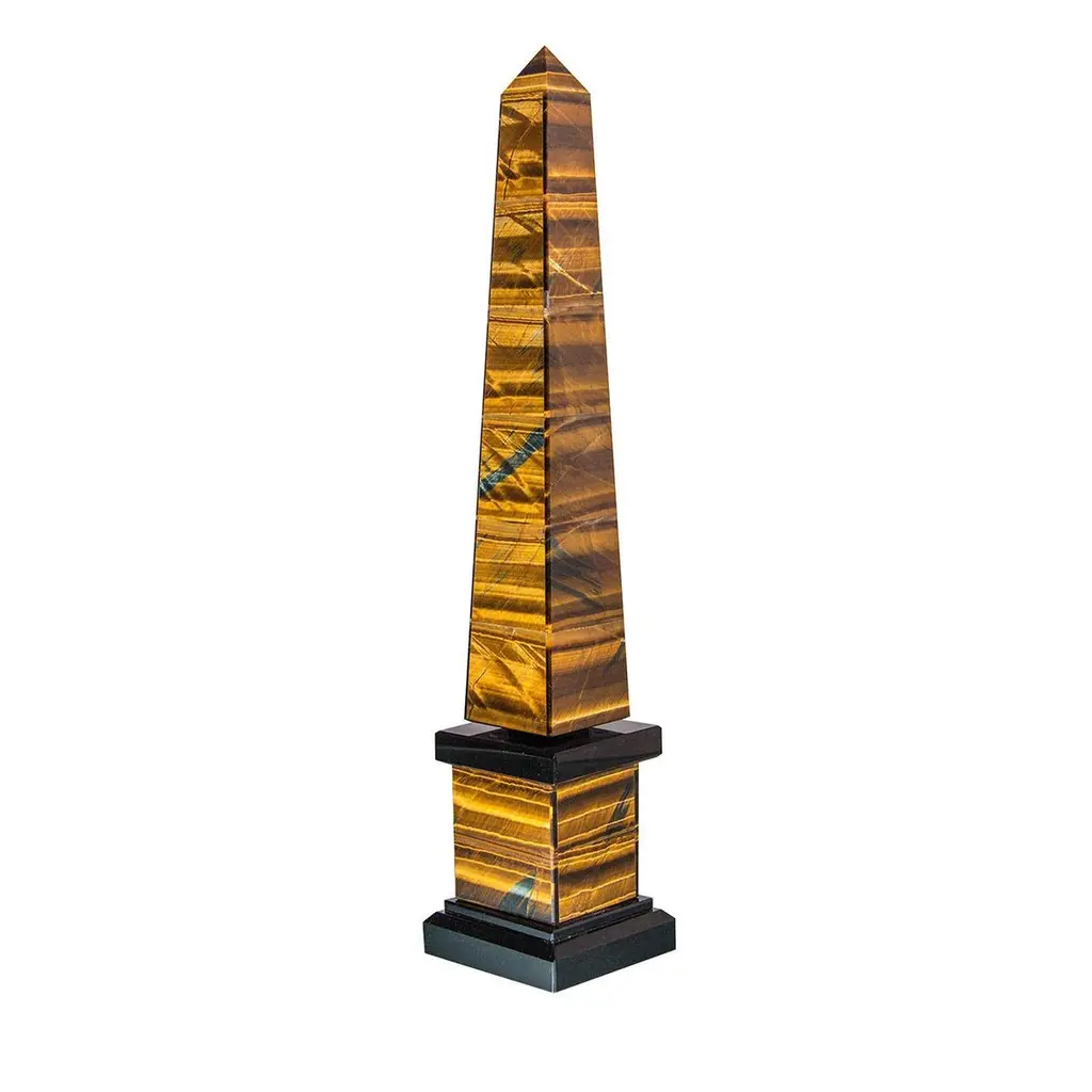 Lateranense Tiger-Eye & Obsidian Obelisk Sculpture By Obsydian Stone