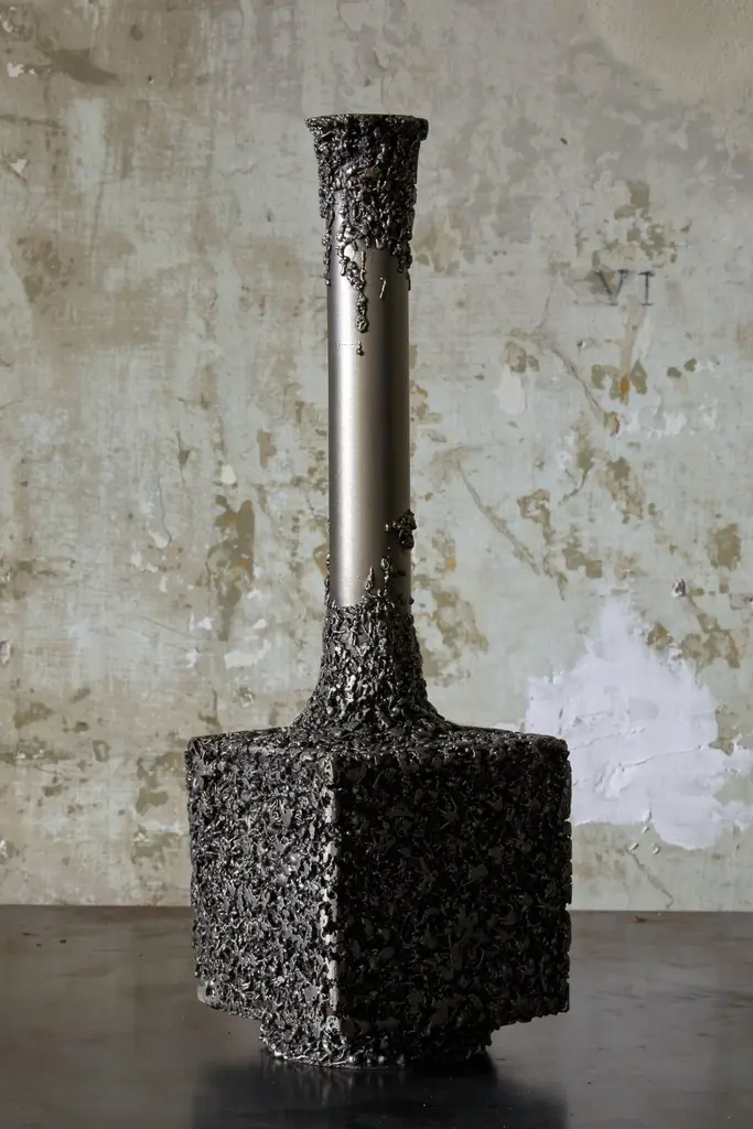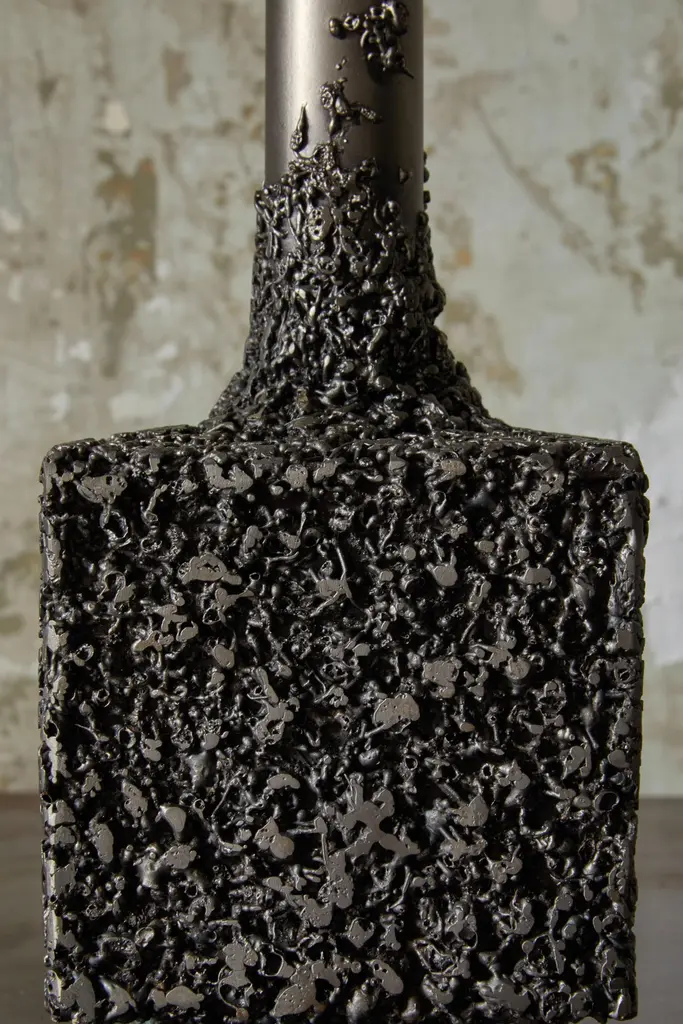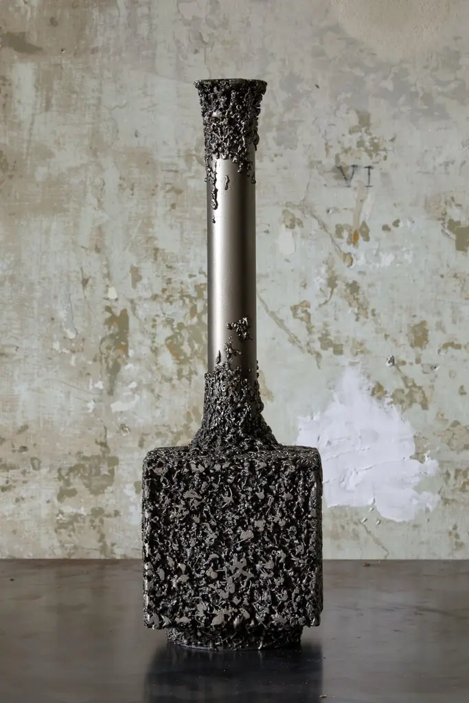 LCN 207 Sculpture by Tommaso Le RoseDimensions: W 11 x D 11 x H 35 cm.Materials: Iron.Lichene is a new experimental design project by designer Tommaso Le Rose. Lichene designs and produces a series of sculptural and functional objects, with or without a predefined use. Lichene’s formal and productive research primordially merges elements and materials, juxtaposed through an “organic decoration” which at the same time, signifies the origin of its structure. Here the industrial world offers a natural declination. And just as happens in nature on an organic level, the same decorations can often take on the most varied functions. The formal study, the workmanship, and the treatment of each object, contribute to the creation of these unique pieces. The sculptures represent new archaeologies, industrial and artisanal, experimental and typological, functional and uncomfortable, designed or left to agglomerate naturally thanks to the passage of time. Tommaso Le Rose controls all phases of production thanks to the collaboration with local artisans. From conception to production, design and craftsmanship feed into a continuous contamination of research, where control meets spontaneity.