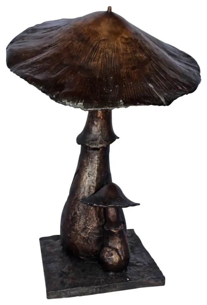 Leaning Mushroom Bronze Statue Fountain - Size: 18"l X 17"w X 24"h.