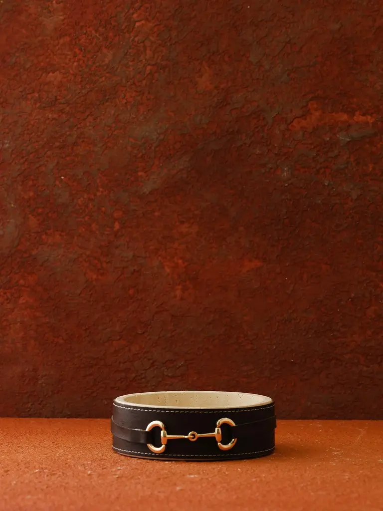 The Travertine Bowl with Leather Belt Detail is a striking fusion of rugged stone and refined equestrian elegance. Crafted from natural travertine, the piece is encircled with a rich brown leather strap, fastened with gold-tone horsebit hardware—a subtle nod to classic saddle design. Its contrast of earthy texture and polished leather adds warmth and character to modern interiors. Perfect for styling on desks, consoles, or dressers, this piece functions beautifully as a decorative catchall or a standalone sculptural object. Each bowl is hand-finished, celebrating the distinct veining and surface tone of the stone.