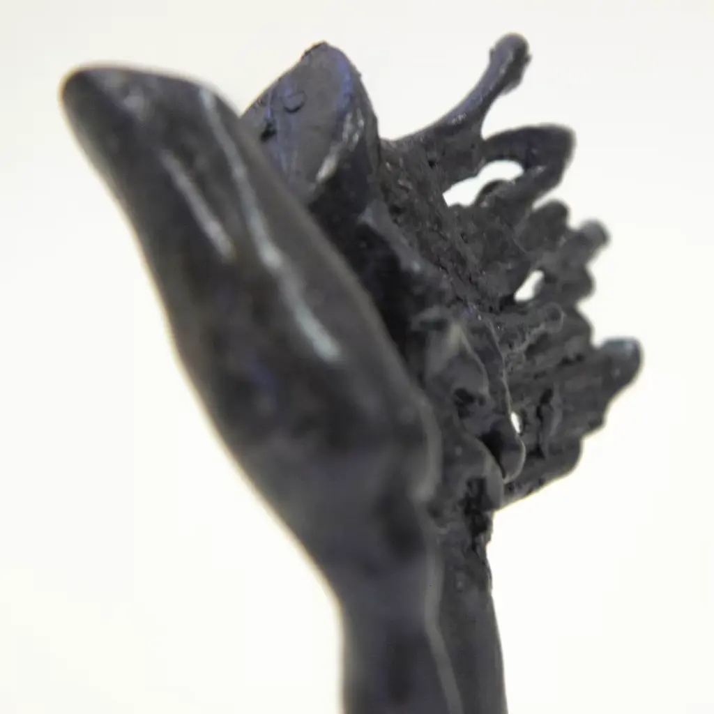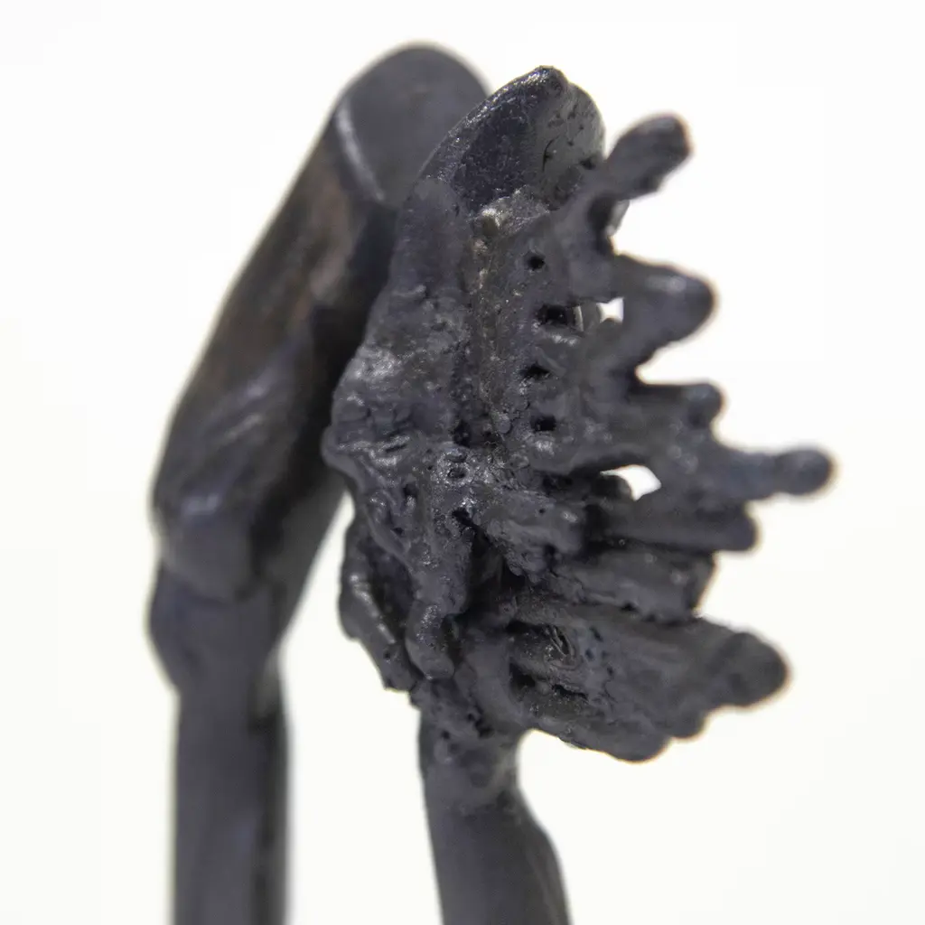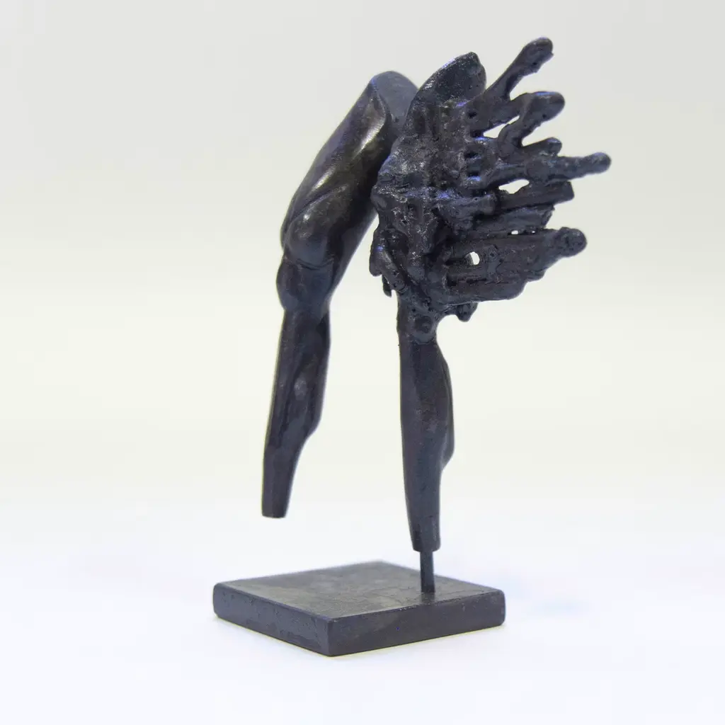Lightness and imperfection served as inspiration for artist Lorenzo Quadalti in the crafting of this striking iron sculpture. Human legs rendered in minute details, hinting at anatomical perfection, are unexpectedly interrupted by a concrete rendering of wind, a fusion that underlines originality as the only authentic sign of beauty.