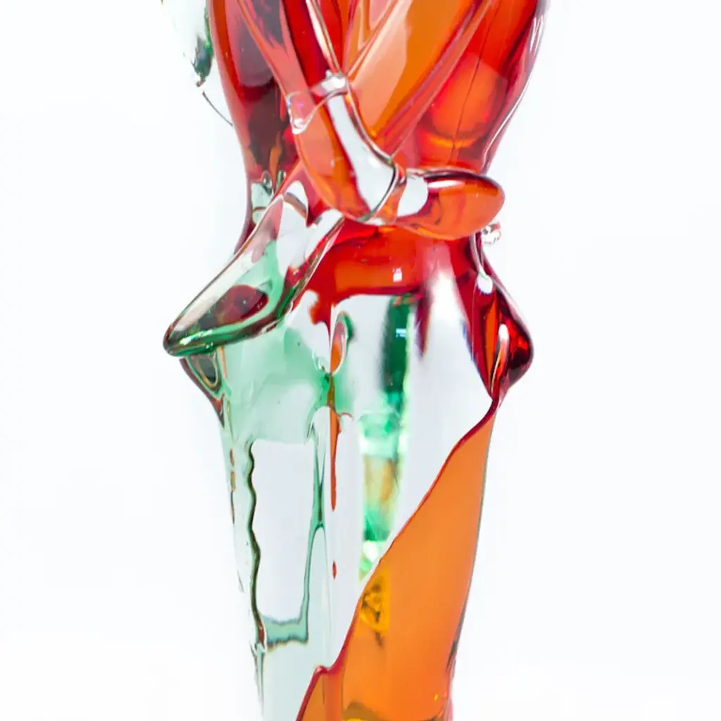 LEO&KATE is a murano Glass sculpture of a romantic embraced couple in red greeen and crystal tones. This unique handmade artwork can be a special gift or a great addition to your home decor.Two souls that come together and blend in one single body, the representation of true love achieved through these marvelous handmade sculptures made of original Murano blown glass. Whether you are looking for a special gift idea for the person you love or are simply an incurable romantic, these unique decorative sculptures are what you need! Fall in love with the delicate interlaces of shapes and colors created by the refined glass and add a touch of romanticism to your home décor. Or conquer the heart of someone special with a precious gift that symbolizes your love. All products are handcrafted and prime production quality. Insubstantial variations in shape, size, colour, small imperfections and/or tiny air bubbles in the glass are not considered defects; they are inevitable and are typical of manual production of the glass and characterize handcrafted production.