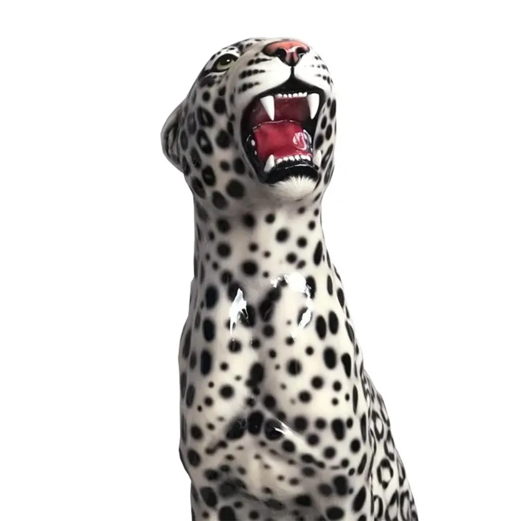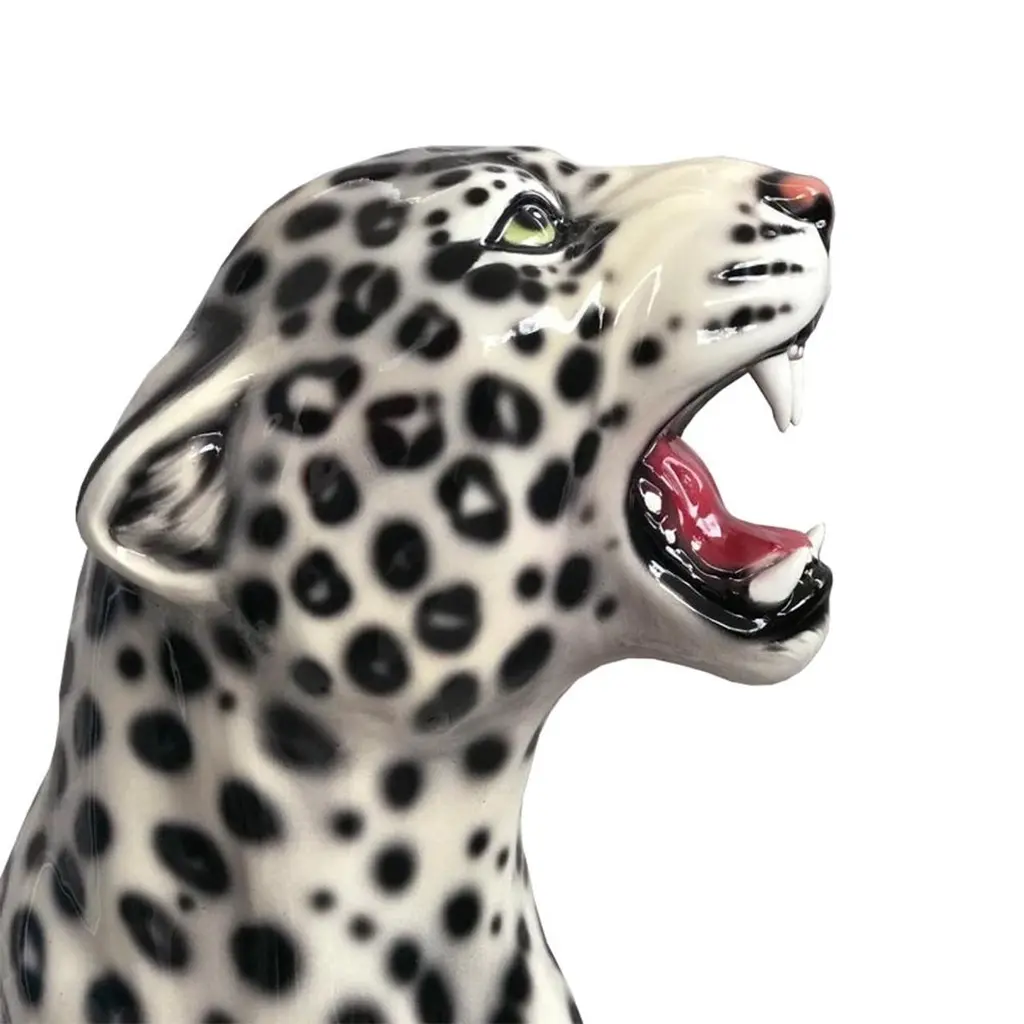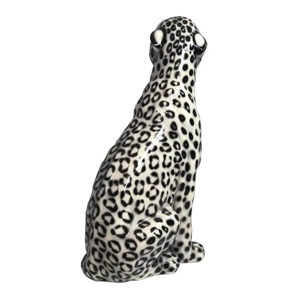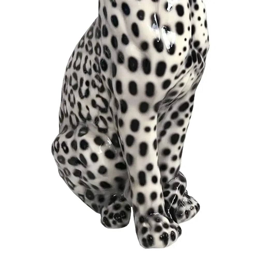 Sculpture leopard black and white right.All in hand-crafted ceramic made in Italy.