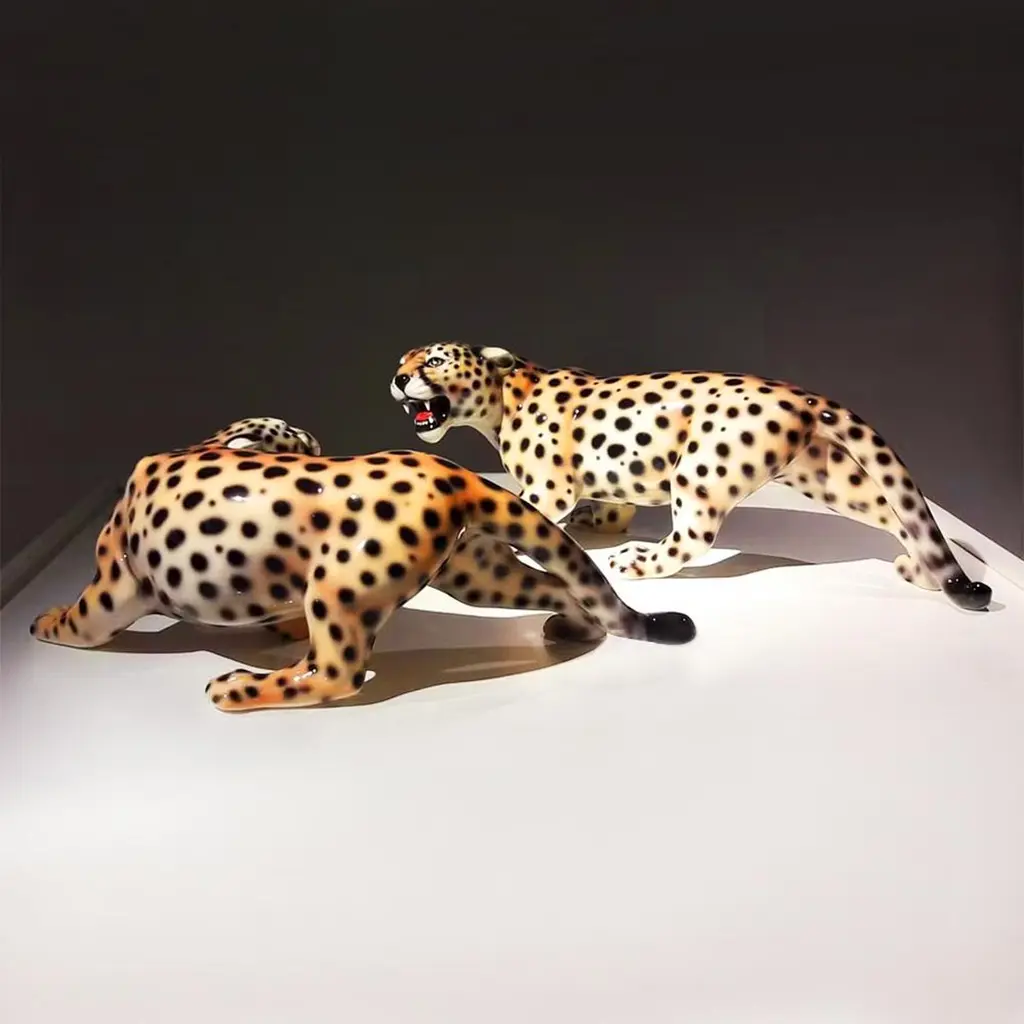 Sculpture Leopard Set of 2 all in ceramicwith leopard pattern.Each piece dimension is: L30xD6xH14cm.