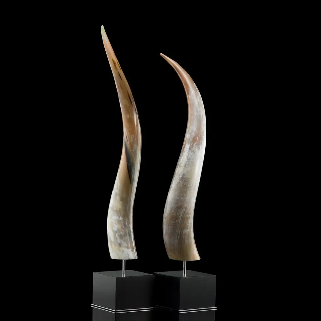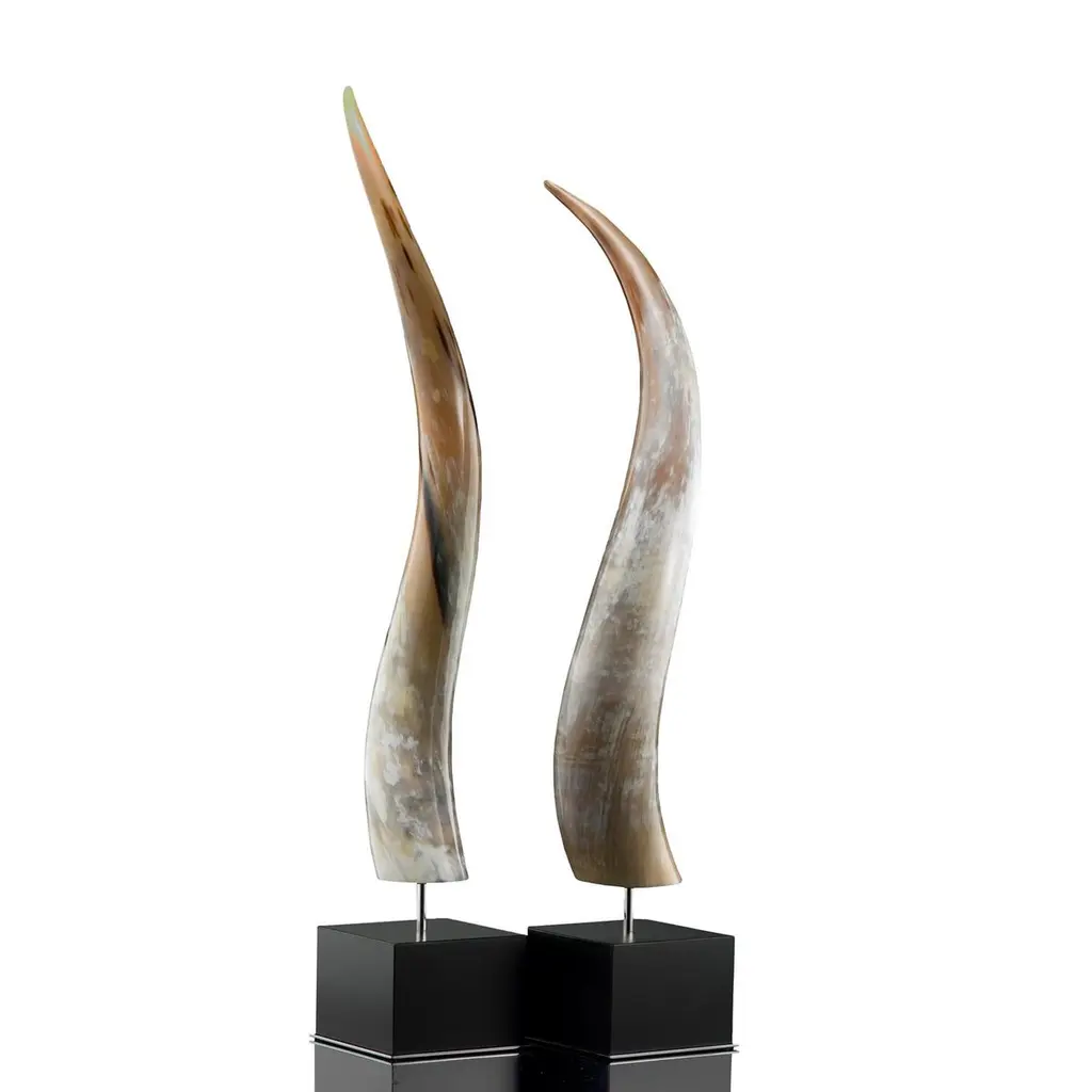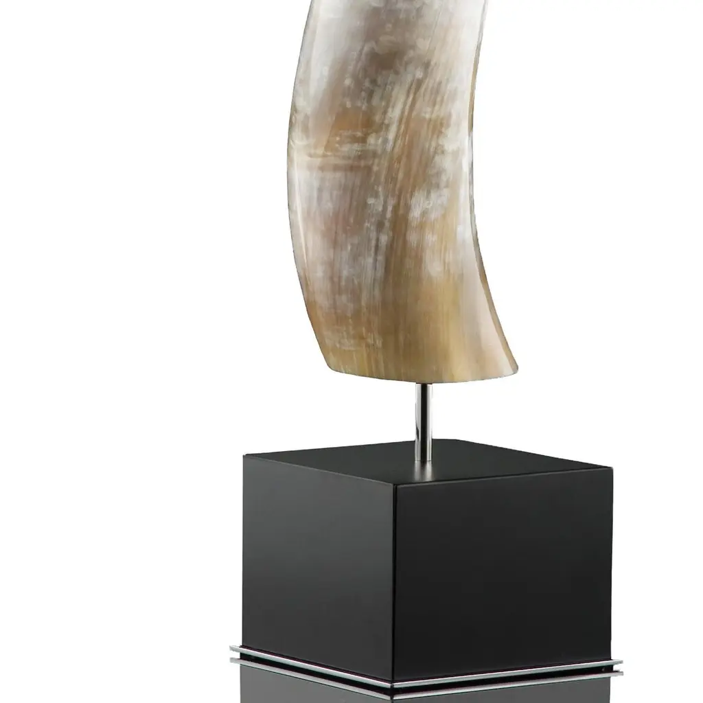 Crafted from natural Corno Italiano, the Leuca sculpture promises to add natural beauty to your home with its organic palette and grain. A modern square base in wood with a glossy black lacquer finish completes the look adding a cleanly elegant appeal to the finished product.Measures: cm 16 x 16 x H variable from 80-90 cmNote: Colors and shades of Corno Italiano processed by our Company are unique and due to the natural origin of raw material. For this reason, Corno Italiano tones that can be seen in pictures are indicative and cannot be reproduced in finished products.