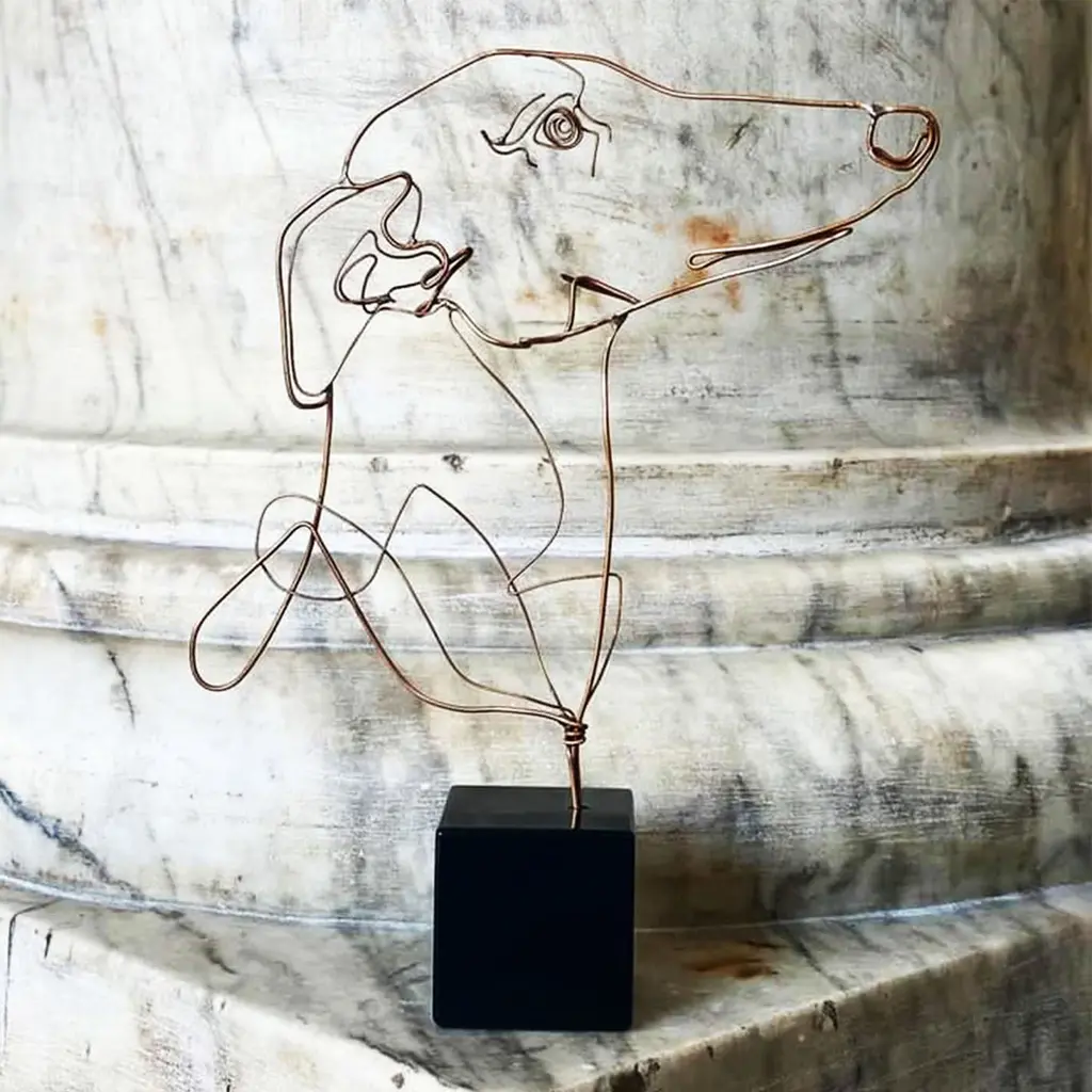 A deftly handmade miniature of a Levrier's snout, this statuette can be customized with a portrait of one's own dog, or any other dog breed. An original gift for an animal lover, it is fashioned of metal wire and supported with a polished black cube base. Other 69 dog breeds are available, please contact the Concierge for more information and customization options.