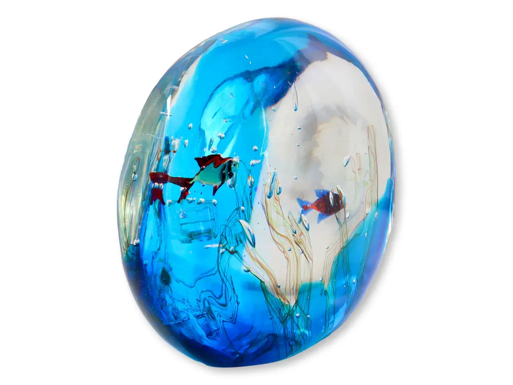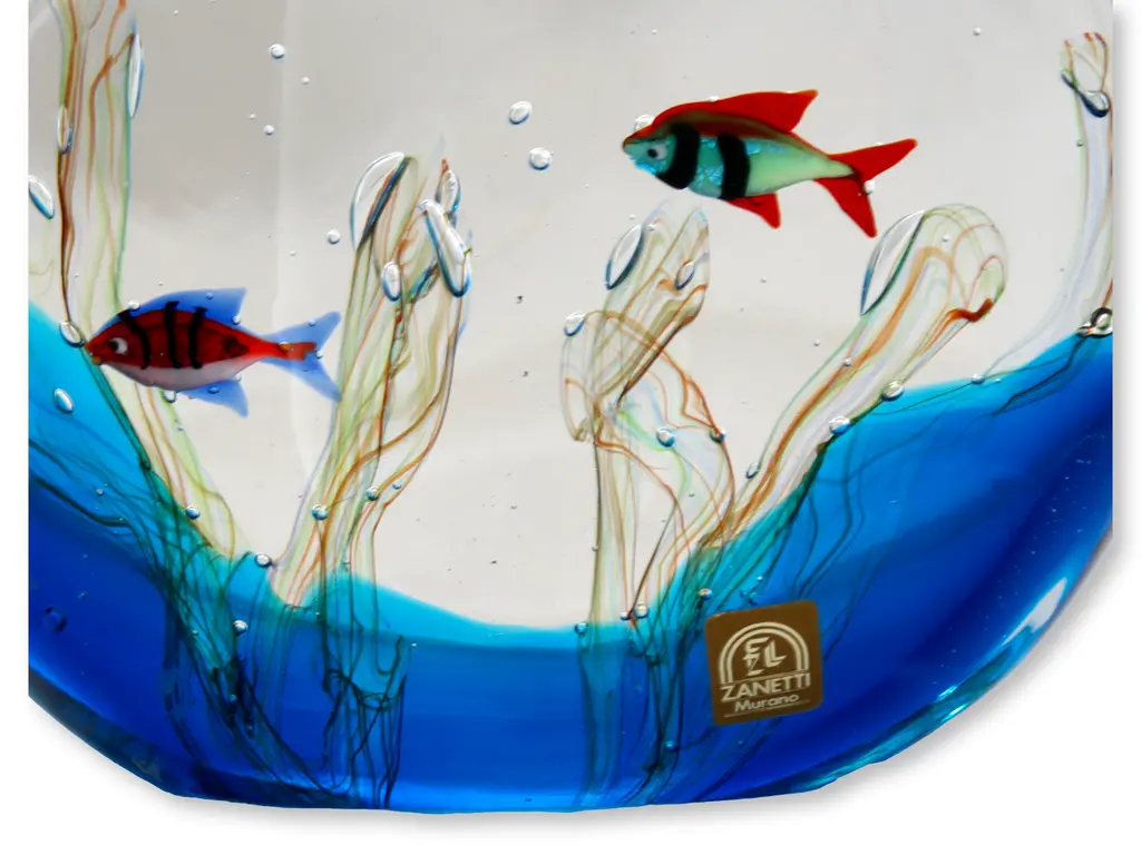 Stunning hand-blown Murano glass artwork by Lico Zanetti. Intricately crafted fish and seaweed, creating a vibrantly colored underwater scene. Whether displayed on a shelf, mantle, or as a centerpiece, this exquisite glass art brings the beauty and tranquility of the ocean into your space. Licio Zanetti is a distinguished artist in the world of Murano glass, renowned for his exquisite glass sculptures. Signed on bottom and original sticker.