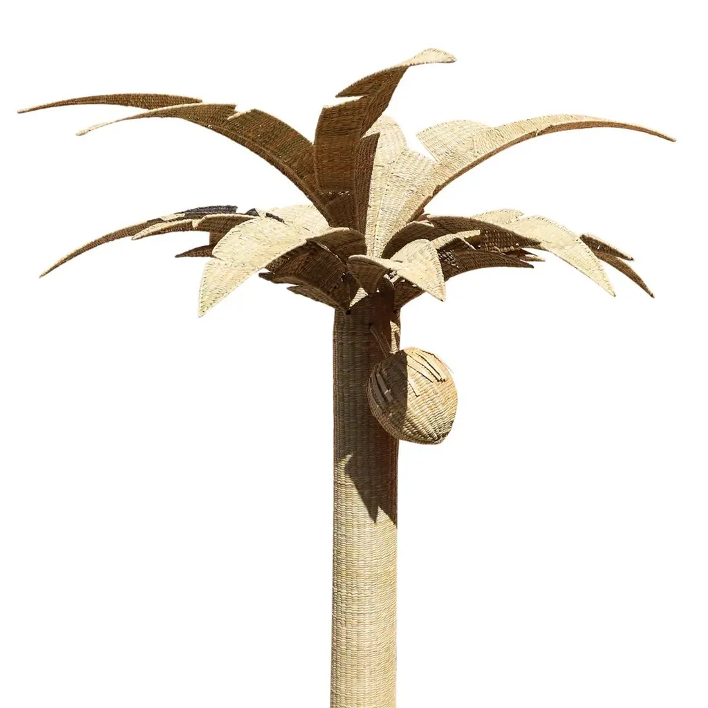 Life size sculpture of a palm tree with a coconut crafted in wicker or reed wrapped over a metal frame with impressive stylized presence. From the FS Flores Collection designed and offered exclusively by F.S. Henemader Antiques.