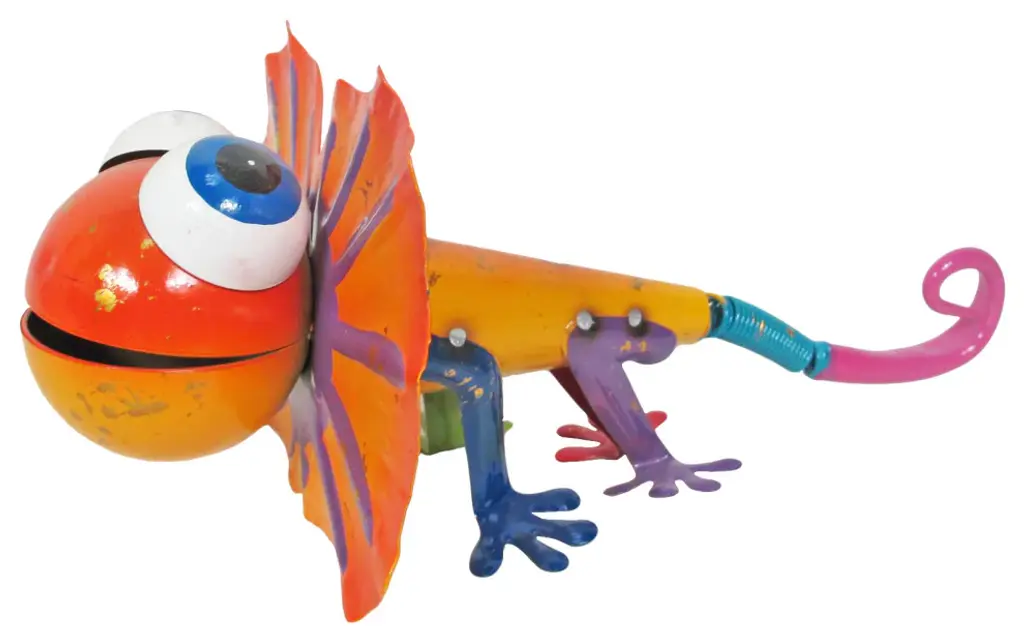 A colorful garden statue that is crafted from durable and weather-resistant metal that is also lightweight allows for versatile placement, whether nestled among flowers in a garden bed, positioned on a tabletop, or displayed on a shelf it is a charming addition to your home.