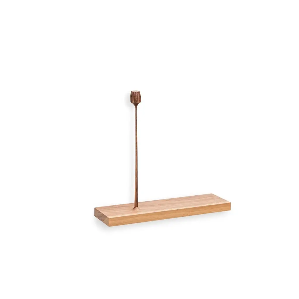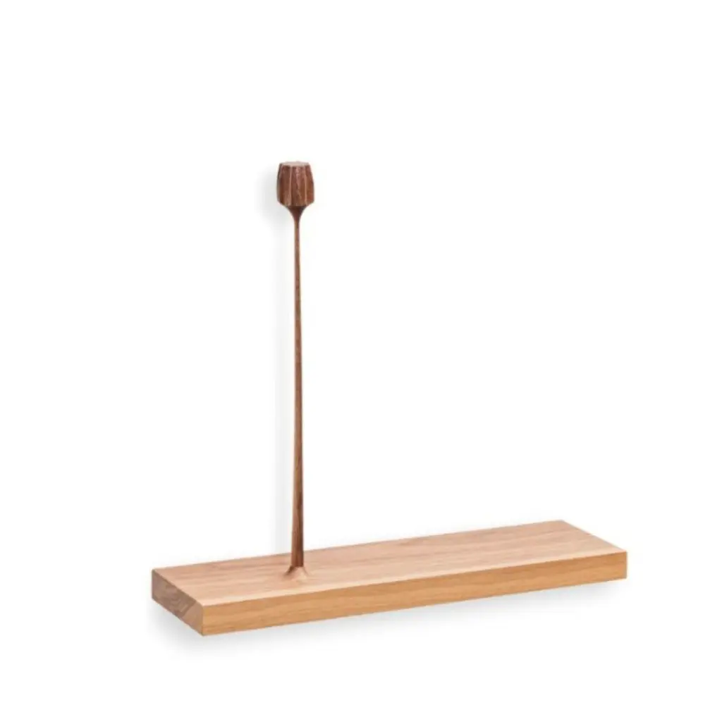 Light Kukkii sculpture 1 flower by Antrei Hartikainen.Materials: black stained oak, natural oil waxed walnut.Dimensions: W 75 / 60 / 40 cm, D 10 cm, H 34 / 42 cm.Also available: dark color & different flower amounts.Kukkii (blooms) is a unique collection of slender-stemmed, wooden flowers and plants which, variously grouped, capture the moment of calm and freedom sometimes experienced in nature. The sculptural groups may be positioned on windowsill, or wall mounted as a floating shelf. The sculptures are handcrafted using a variety of techniques. Kukkii sculptures won Product of the Year 2017 award in MUOTO gala, a gala awarding the best Finnish design.Antrei Hartikainen is a master cabinetmaker and designer from finland known for his exquisite works in wood. The award- winning pieces, including functional products and pure art works, achieve heights of sensuality, elegance and craftsmanship. These important factors are emphasized in Antrei Hartikainen’s work, which constantly seeks to challenge and blur the traditional categorizations between functional objects and visual arts. Hartikainen’s sculptural approach can be studied through his organic body of work, which simultaneously highlights the inspiration drawn from his material of choice, wood. Antrei hartikainen has shown his works in numerous solo and group exhibitions all over the world. Antrei have been awarded with prize as a Young Designer of the Year 2018 in Finland and shortlisted as Emerging Designer of the Year 2019 by Dezeen awards.
