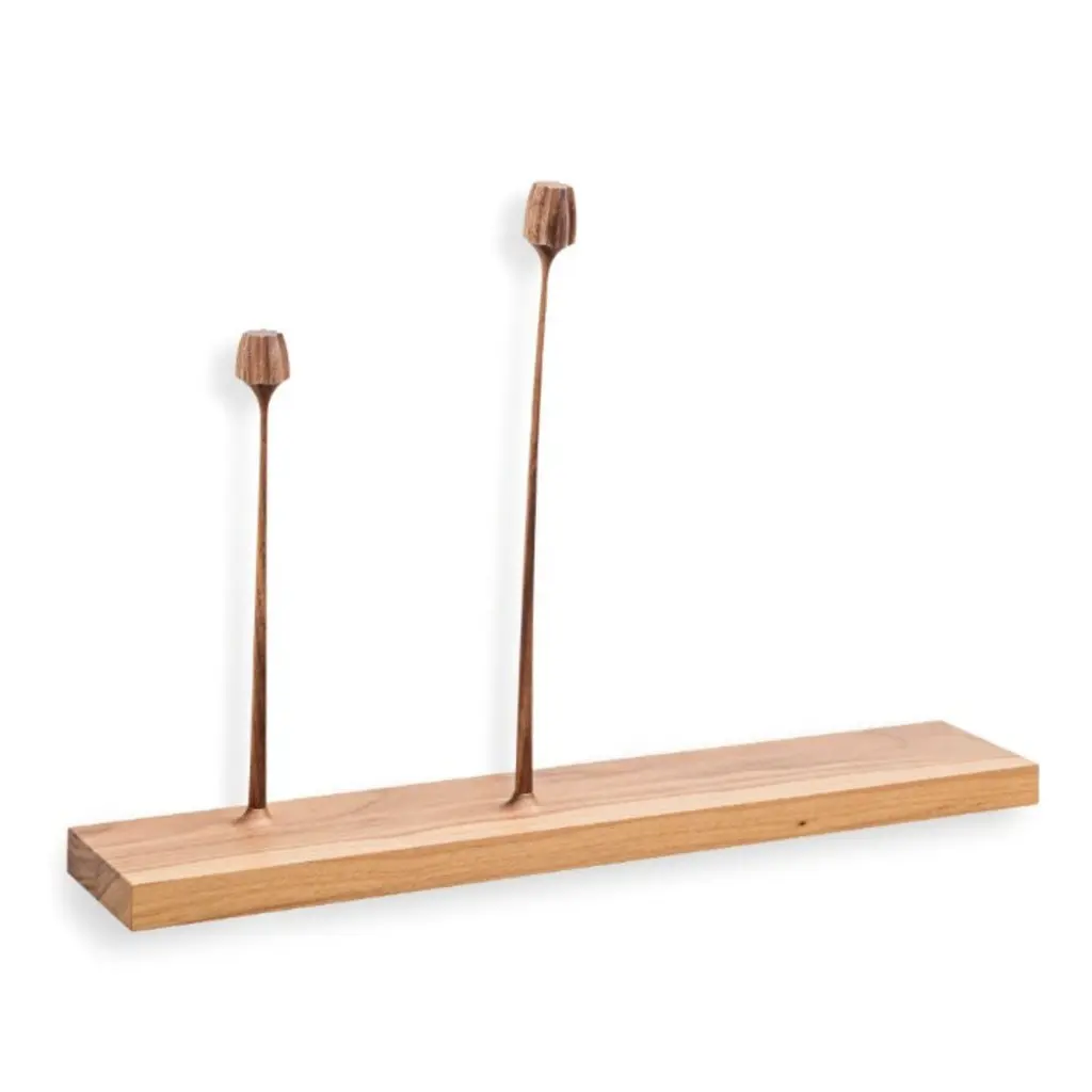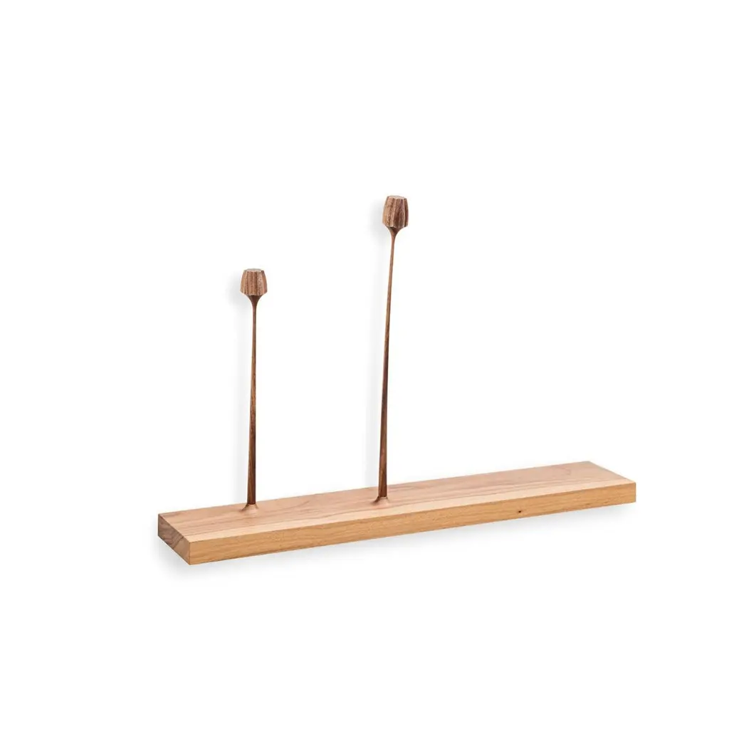 Light Kukkii sculpture 2 flowers by Antrei HartikainenMaterials: Black stained oak, natural oil waxed walnutDimensions: W 75 / 60 / 40 cm, D 10 cm, H 34 / 42 cmAlso Available: dark color & different flower amounts,Kukkii (blooms) is a unique collection of slender-stemmed, wooden flowers and plants which, variously grouped, capture the moment of calm and freedom sometimes experienced in nature. The sculptural groups may be positioned on windowsill, or wall mounted as a floating shelf. The sculptures are handcrafted using a variety of techniques. Kukkii sculptures won Product of the Year 2017 award in MUOTO gala, a gala awarding the best Finnish design.ANTREI HARTIKAINEN Is a master cabinetmaker and designer from finland known for his exquisite works in wood. The award- winning pieces, including functional products and pure art works, achieve heights of sensuality, elegance and craftsmanship. These important factors are emphasized in Antrei Hartikainen’s work, which constantly seeks to challenge and blur the traditional categorizations between functional objects and visual arts. Hartikainen’s sculptural approach can be studied through his organic body of work, which simultaneously highlights the inspiration drawn from his material of choice, wood. Antrei hartikainen has shown his works in numerous solo and group exhibitions all over the world . Antrei have been awarded with prize as a Young Designer of the Year 2018 in Finland and shortlisted as Emerging Designer of the Year 2019 by Dezeen awards.