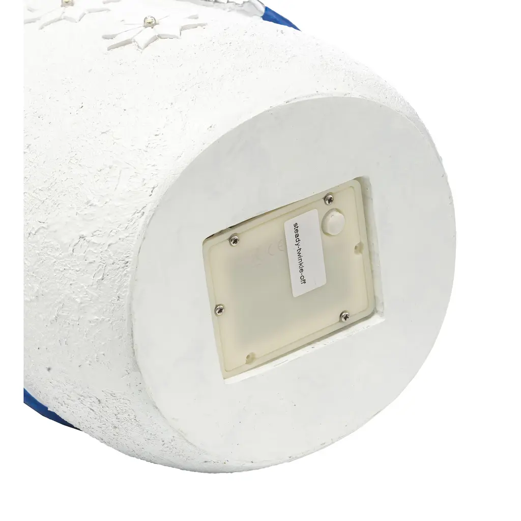 Let this charming vintage-style lighted shorty snowman holiday statue stand sentry at your front door, in the yard, or anywhere indoors. Brighten any space with this happy little accent with great detail and lights to make it shine at night. Our short snowman statue will bring a smile to everyone who sees him. Each adds character and brightens not only your space but also your mood! Sure to become a treasured family favorite for generations, they're nicely finished front and back. Snowman has lights in his scarf and belly; 8 lights in all. Weather-safe resin has a finish resembling porcelain. Each statue is meticulously hand-painted with wonderful details. Battery-operated lights operate on a timer for 6 hours on, and 18 hours off. Takes 2 AA batteries, not included.