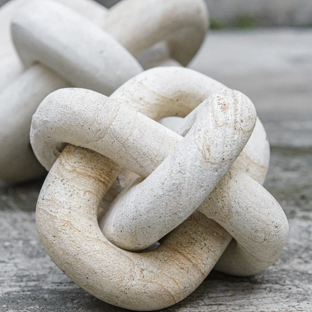 This Exquisite Set Of Two Limestone Link Sculptures Adds A Touch Of Artistic Elegance To Any Space. Each Piece Is Meticulously Crafted From Natural Limestone, Showcasing A Unique Texture And Organic Beauty. Their Intertwined Designs Symbolize Unity And Connection, Making Them Perfect For Display On Shelves, Tables, Or As Part Of A Gallery Wall. May Be Used Outdoors. Sizes: S-5x5x5, L-7x7x7