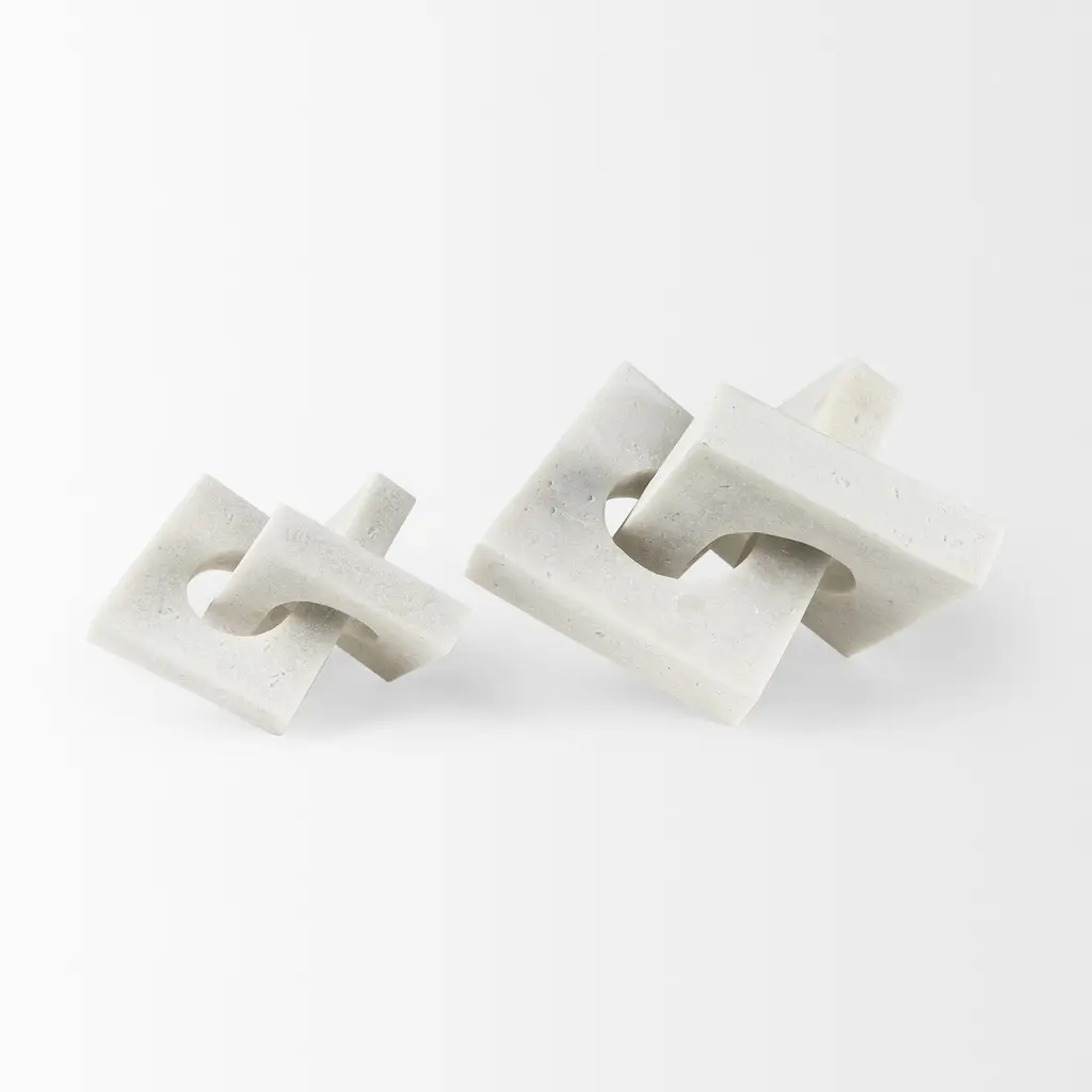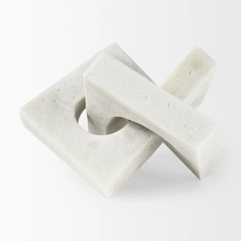 Linx Large Granite Resin Sculpture Decorative Object - 8.0l X 8.0w X 5.3h - White