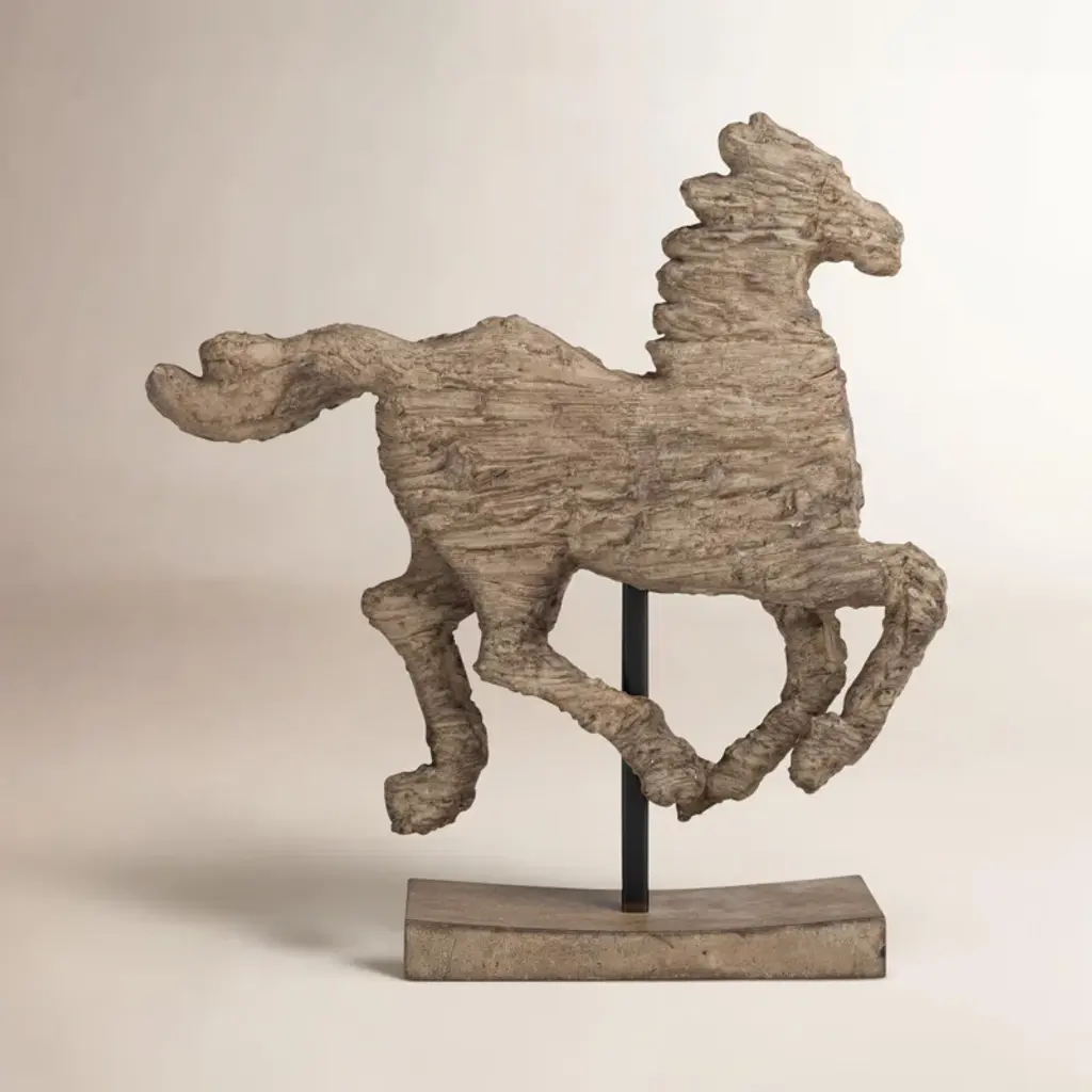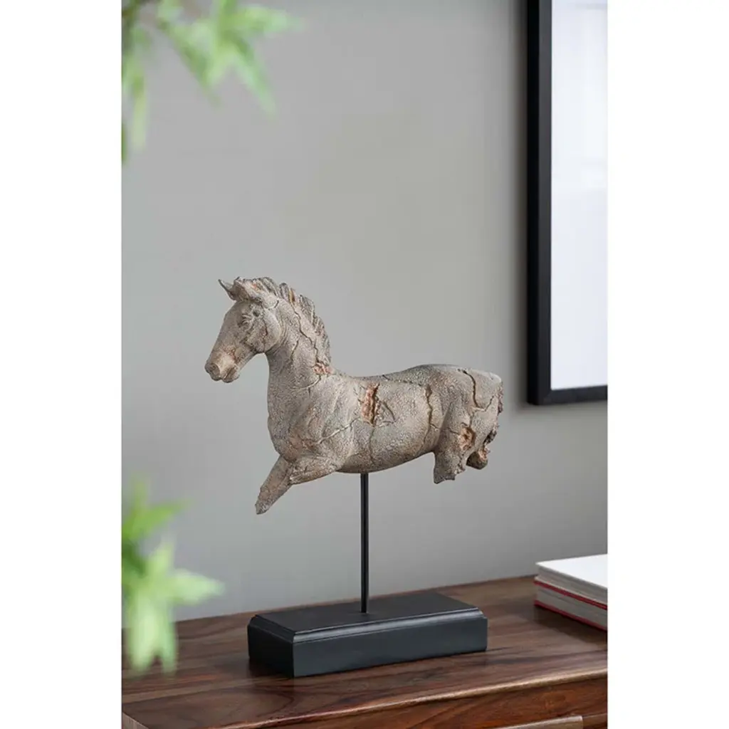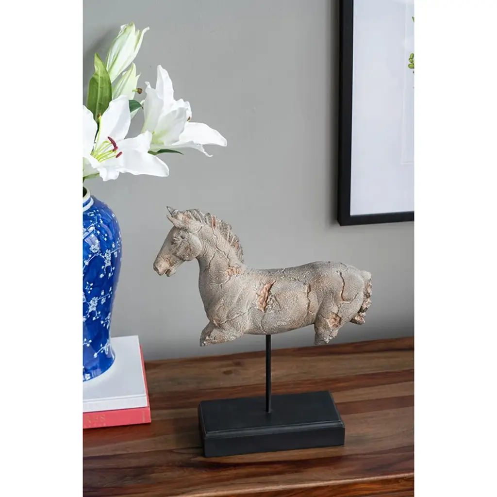 This antique-style horse statue is made from stone powder and resin in a natural Gray and then mounted on an iron rectangular base. It's a tabletop sculpture with a classical style that brings together your transitional decor. Add it to your home office, study, or bedroom for a lovely understated antique touch.