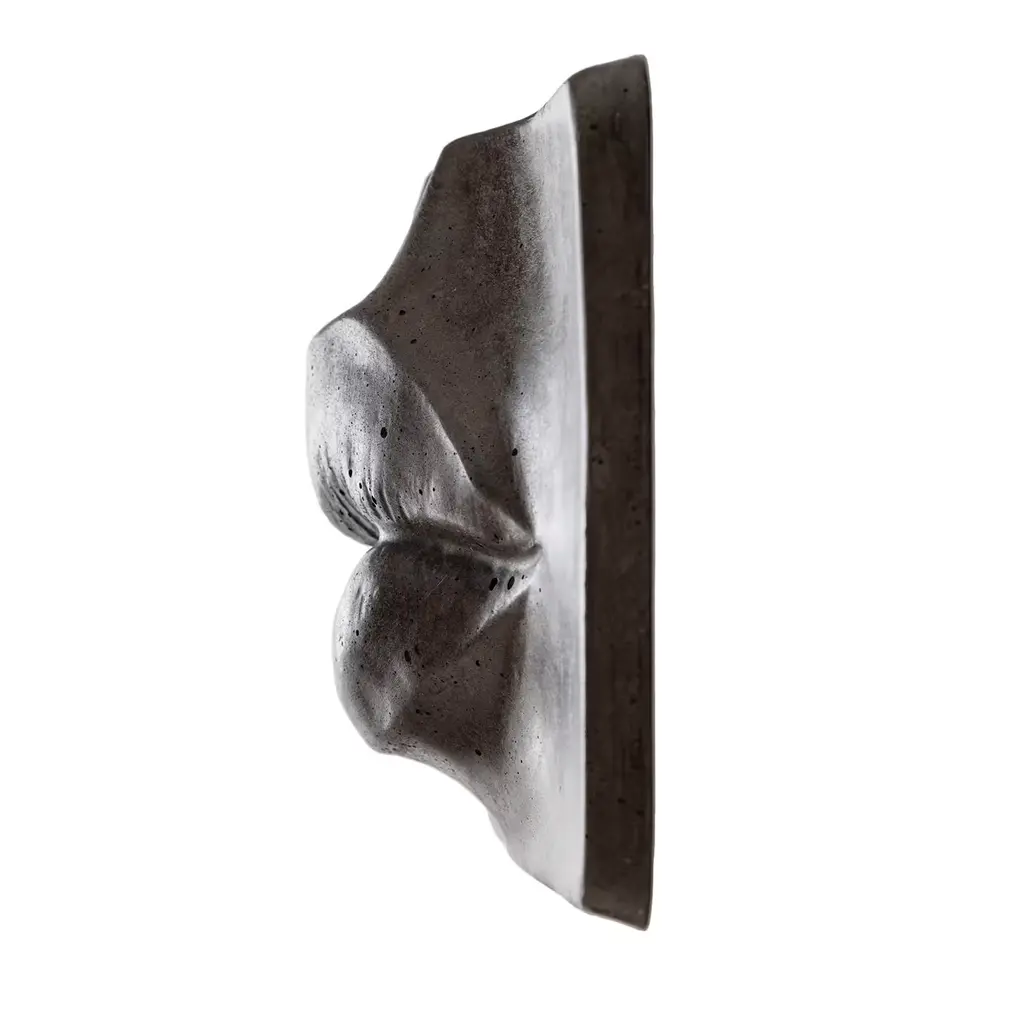 Entirely handmade sculpture with a mixture of cements and volcanic sands from Etna. The deliberately-made porous texture and uneven colour is the result of a pigmentation obtained thanks to natural materials and slow drying in the air. The final process of waxing creates a slightly glossy protective patina, which can be removed. Equipped with a recess on the back, it can be hung on the walls thanks to the metal brackets supplied with the product.