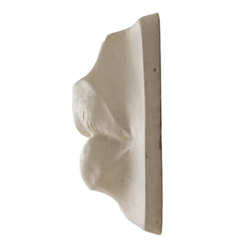 Entirely handmade sculpture with a mixture of cements and white quartz grains. The deliberately-made porous texture and uneven ivory colour is the result of a pigmentation obtained thanks to natural materials and slow drying in the air. The final process of waxing creates a slightly glossy protective patina, which can be removed. Equipped with a recess on the back, it can be hung on the walls thanks to the metal brackets supplied with the product.