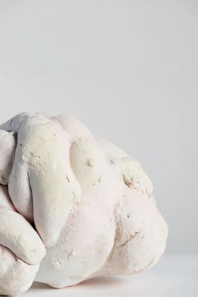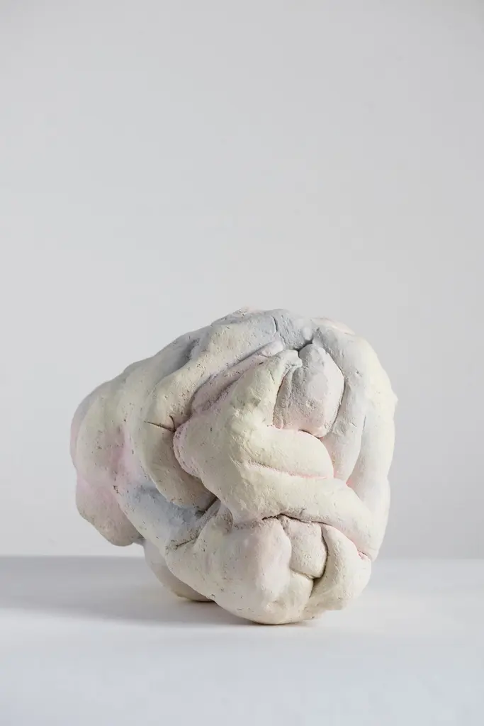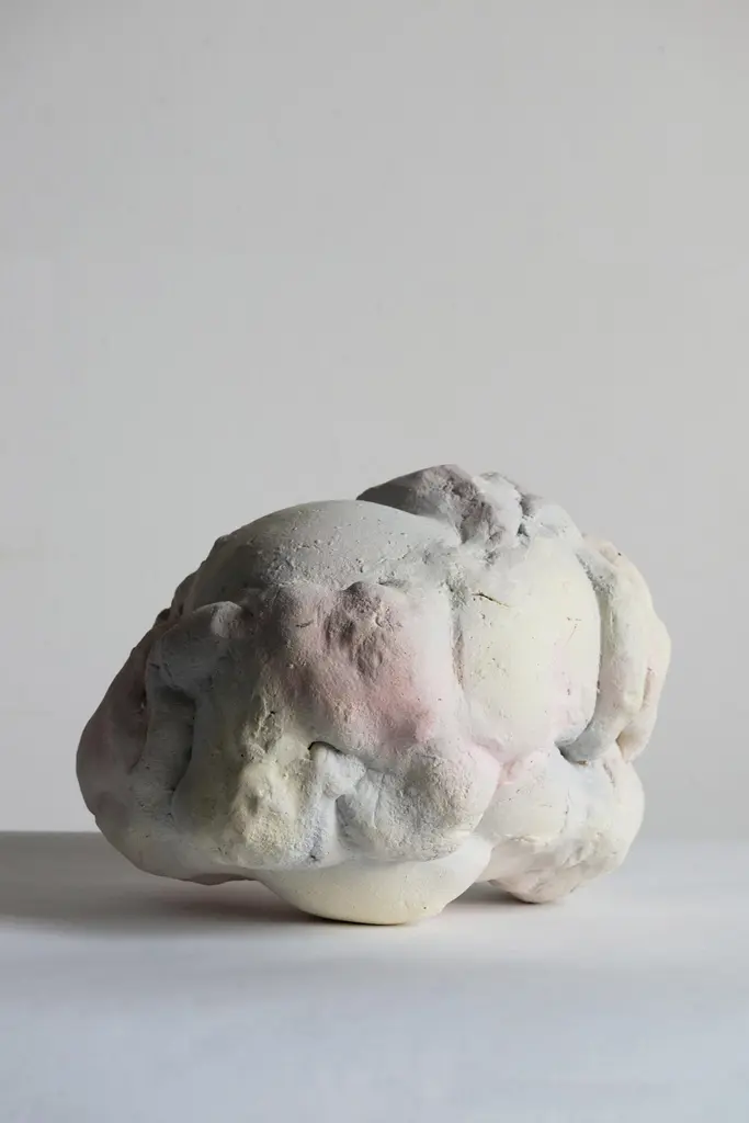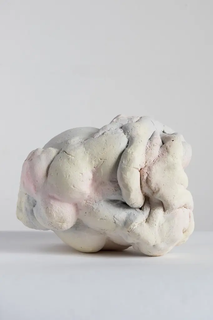 Liquid sky sculpture by Natasja Alers, 2020.Dimensions: 31 x 35 x 29 cmMaterial: Ceramics, engobes.Visual artist Natasja Alers (The Hague, 1987) graduated from the Gerrit Rietveld Academy in the field of ceramics. Alers makes casts of human body parts and constructs them into new sculptures, vases, reliefs, seating objects and installations. Her work has previously been on display at Collectible Art Fair, Art Zuid, PAN Amsterdam, Big Art, Rademakers Gallery and foreign exhibitions in cities such as Berlin, Brussels, Antwerp and Copenhagen.Alers plays with the viewer’s expectations. her work attracts visually, drawing you nearer, but it also gets under your skin. It is an exploration of contradictory moods of sensuality and unsettling feelings, a quest for the raw and ambiguous spaces in both body and psyche. By pushing and stretching the sculptured body from within, it raises tension and vulnerability in the Material. The visceral glazes and the specific combination of colors refer to redefining the skin of the sculpture.