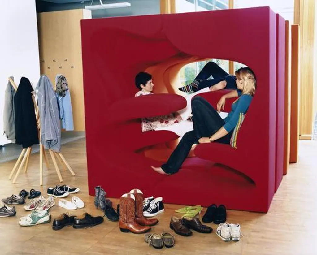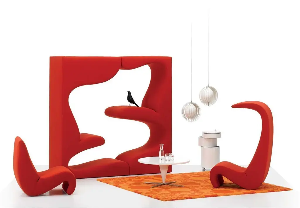 ****Please Note: This product is not FR compliant and cannot be shipped to the following places: Anchorage, California, D.C., Maine, Maryland, Minnesota, New Hampshire, Rhode Island, San Francisco, Vermont, Washington, Canada. Contact us for information on complaint versions.**** The organically shaped Living Tower furniture sculpture by Verner Panton can be used on four different levels. Over two metres high, the appealingly upholstered seating tower has a stable frame made of birch plywood. The cleverly arranged interior niches can be used in sitting and reclined positions, encouraging communication and relaxation.