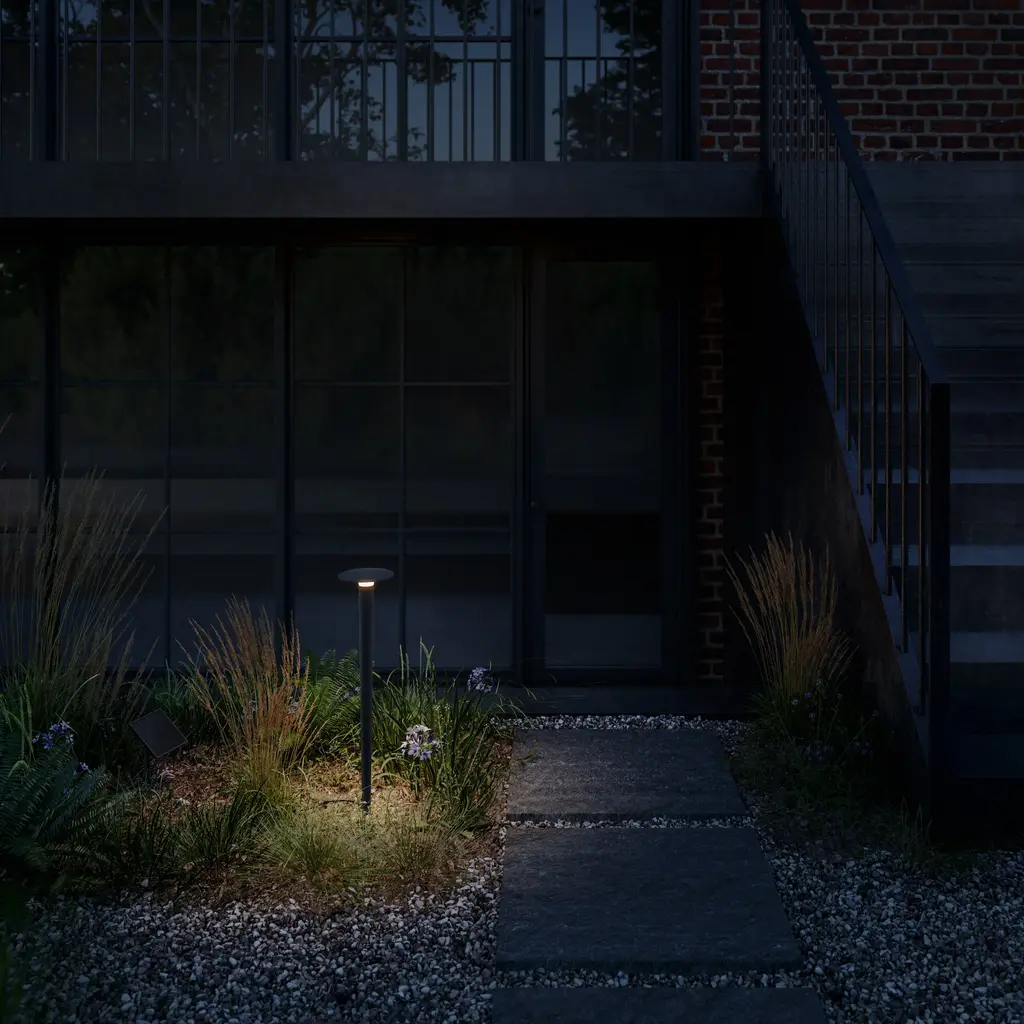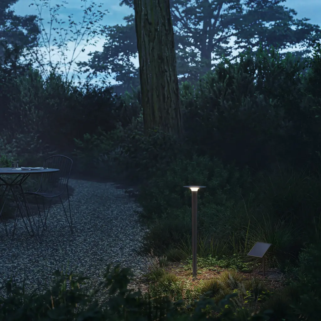 The Lix Spike Solar Light's slim, spike-mounted profile stands tall, providing warm, ambient lighting that turns on automatically at dusk. With a built-in solar panel and rechargeable battery, this light runs independently, delivering up to 15 hours of illumination after a full charge. Crafted by Klaus Nolting, the Lix Spike Solar Light is built to endure outdoor conditions, featuring a robust aluminum and polycarbonate construction with a weatherproof IP65 rating.