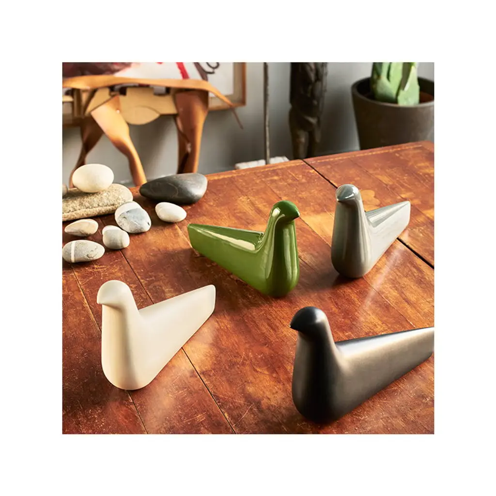 Vitra’s L’Oiseau by Ronan and Erwan Bouroullec is a minimalist interpretation of classic animal sculptures used in home decor. L’Oiseau differs from the naivist cuteness of traditional animal figures with its refined silhouette that complements the interior in an elegant way. The wooden version of L’Oiseau is perfected with a beautiful grain pattern, and the ceramic birds get their character from a sophisticated palette of colors. Due to its handcrafted manufacturing process, every L’Oiseau is a unique piece of its own.
