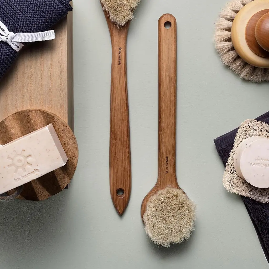 A body brush that’s suitable for sensitive skin and responsibly made? The Lovisa Bath Brush gives you the best of both worlds. Designed by Swedish designer Lovisa Wattman for Iris Hantverk and crafted intuitively by artisans with impaired vision using traditional brush binding techniques, this beautiful brush is all about feel with its soft horsehair bristles. The long handle in oil-treated oak wood makes it easy to reach any part of your back. When you’re done with your brush, simply leave it standing on the horsehair or hang it so it can dry naturally.