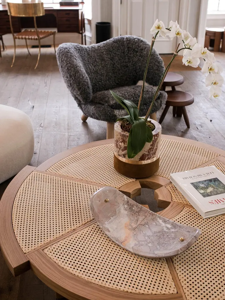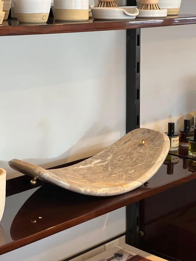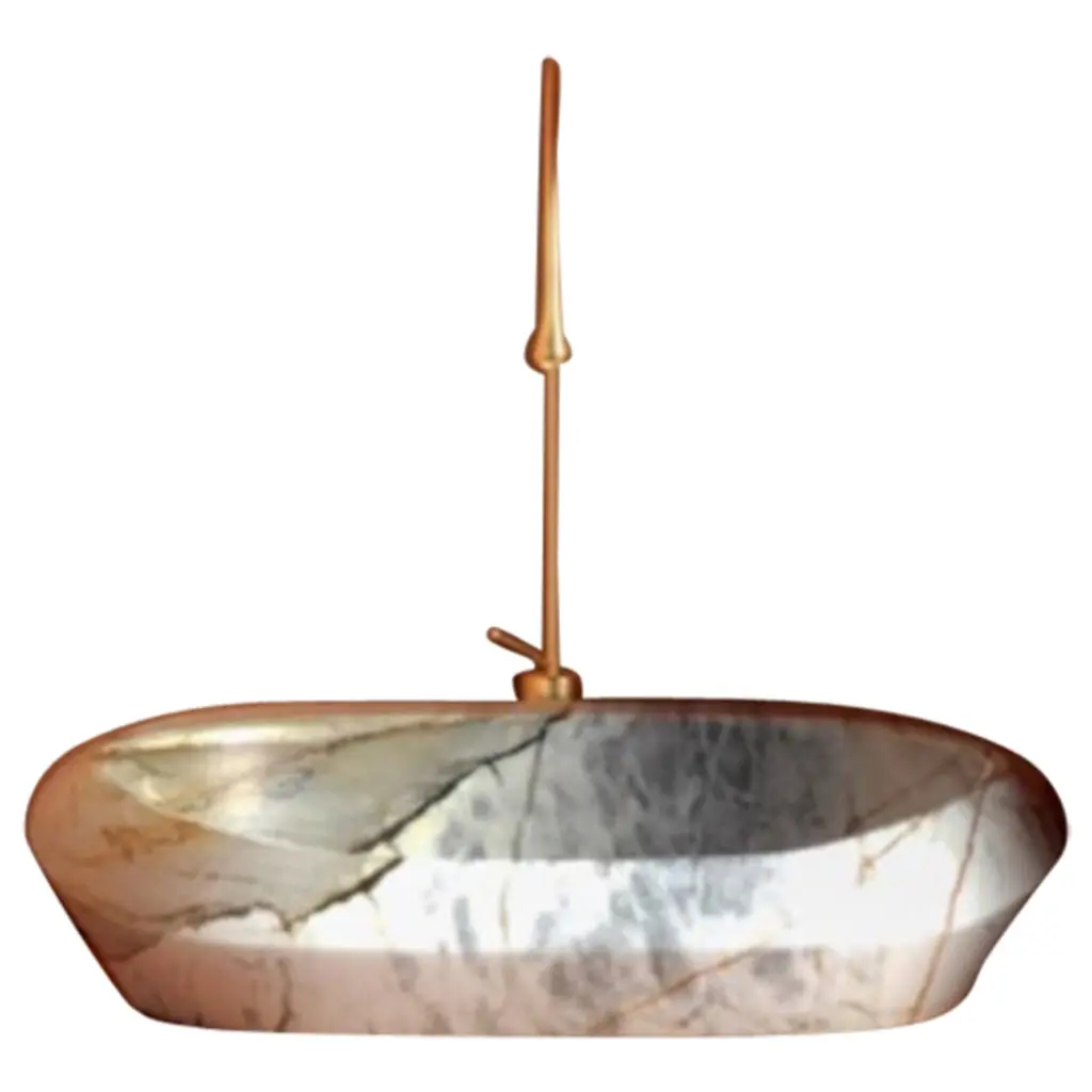 Crafted from Breccia Marble, the nupe bowl is adorned with beautiful brass details. This attractive bowl will enhance your dining table as a center piece or fruit bowl. Designed by Luca Erba for Collection Particuliere.Luca Erba is an Italian architect and designer born in 1984 in Brianza. He graduated from Polytechnic University of Milan where he studied architecture. Erba launched his own studio and gallery in 2010. His approach celebrates a connection between heritage, materials, industrial design, natural shapes and refined craftsmanship. His ultimate purpose is to create long-lasting objects, combining contemporary taste and strong respect for the past.Collection Particuliere was created in 2014 by Jérôme Aumont, presenting meaningful furniture and objects with bold, clean shapes. The primary materials are wood, marble, leather, brass and ceramic—chosen for their character and ability to age with grace. Collection Particulière aims to be an immersion into “daily life objects, where every single piece of furniture and every object is considered to be a sculpture, a piece with a true statement. A piece that does not immediately show its true nature.”Aumont has partnered with some of the leading names in European design. Among the talented collaborators are Christophe Delcourt, Grégoire de Lafforest, Dan Yeffet, Arno Declercq and Dessuant Bone.