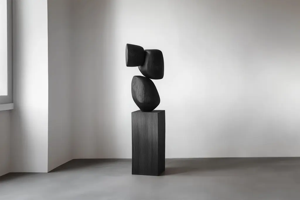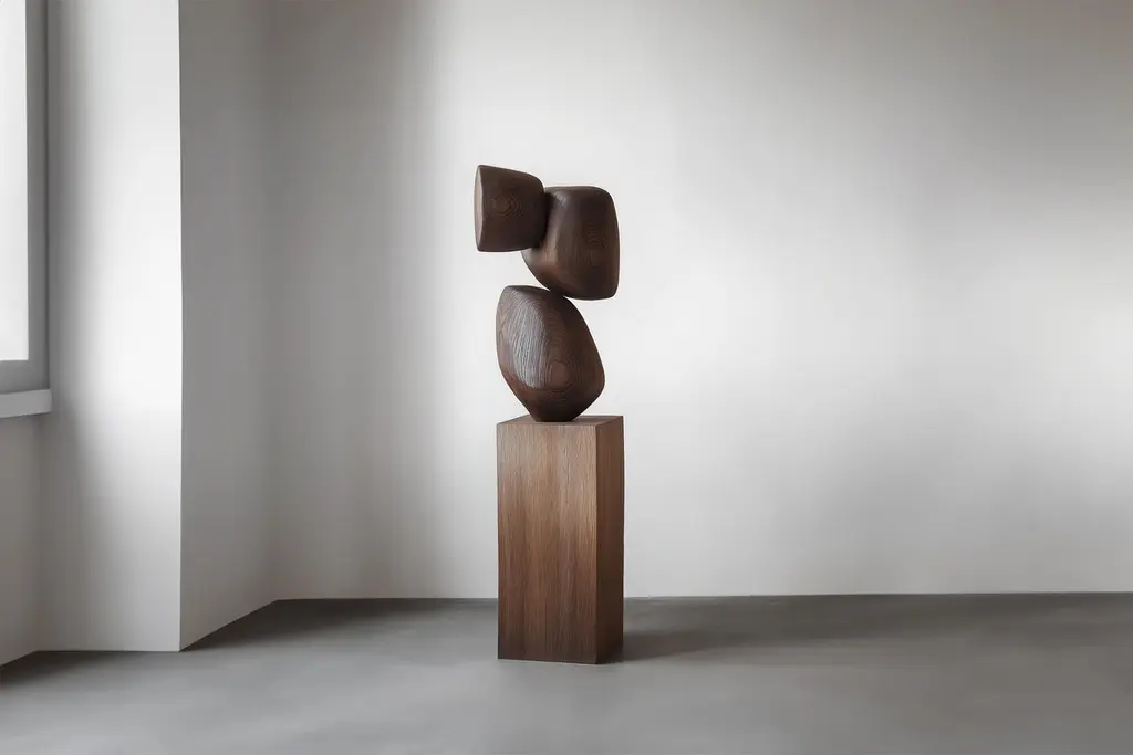 Lull No112 Wooden Totem Sculpture by Joel Escalona – Perfect for Luxury Spaces———Balance and tension are at the core of these sculptures. The interplay between the smooth, rounded forms and solid, angular bases creates a delicate equilibrium that invites contemplation. Fragile elements seem to find strength in their very vulnerability, constantly negotiating their own stillness. The tension remains present, yet never descends into chaos, evoking a quiet pause, a moment of serenity in the motion of life.The juxtaposition of curved, pebble-like shapes against straight-edged bases mirrors the harmony between the organic and the geometric. These forms feel both natural and sculpted, as though shaped by the slow, deliberate hand of nature and the precision of craftsmanship. It’s as if these pieces rest in a moment of perfect balance—a pause between forces that seem at odds, yet together, create something deeper and more profound.This collection embodies a monumental idea—one that celebrates the subtle tension between fragility and endurance. Though the forms may appear delicate, their strength lies in resilience. Each sculpture stands tall and quietly powerful, offering a sense of solace in stillness, a reminder that stability can emerge from the most unlikely structures.These pieces explore the delicate dance between opposing forces, where solace and tension coexist in harmony. The most meaningful moments in life often come from these pauses, from embracing the quiet spaces between movement. These sculptures whisper a truth—that transformation often finds its roots in stillness, in the spaces between tension and release.Each sculpture is crafted from solid wood in our workshop in Mexico City, ensuring no two pieces are ever alike—not only in form, but also in the natural texture and tone of the wood itself. Just as no two trees are the same, each piece carries its own unique character, shaped by the grain and color variations of the wood. This natural diversity is what makes each sculpture truly one-of-a-kind. These works are made to order, allowing the time and care needed to ensure that every piece reflects its own individuality and beauty, celebrating the organic and the serene pause within the material.——NONO is a Mexican design brand with more than 10 years of experience dedicated to the production of interior furnishings, editions, and custom-made projects. At NONO, we create pieces of extraordinary beauty, accommodating the particular needs and tastes of each client with exclusive high-quality designs.————Some details to consider when placing an order with us:• Catalog images are digitally generated. Actual products may slightly vary in texture, grain, and final finish due to natural material differences. Despite these variations, our expertise ensures each piece maintains high quality and matches the intended design.• All of our products are made to order, and the lead time for standard products is estimated to be 9 to 12 weeks, plus shipping time. However, special pieces or sculptures may require a longer lead time.• We offer customization in dimensions and finish for all of our furniture pieces, which may result in additional charges.• We only facilitate freight services by a third party. The client is solely responsible for any associated import/export taxes, as well as any necessary customs paperwork.• We are not responsible for any damages that may occur during shipping or for any customs-related delays.