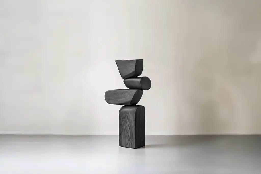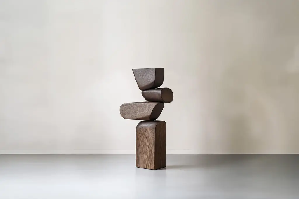 Lull No20 Geometric Wooden Sculpture by Joel Escalona – Ideal for Modern Design———Balance and tension are at the core of these sculptures. The interplay between the smooth, rounded forms and solid, angular bases creates a delicate equilibrium that invites contemplation. Fragile elements seem to find strength in their very vulnerability, constantly negotiating their own stillness. The tension remains present, yet never descends into chaos, evoking a quiet pause, a moment of serenity in the motion of life.The juxtaposition of curved, pebble-like shapes against straight-edged bases mirrors the harmony between the organic and the geometric. These forms feel both natural and sculpted, as though shaped by the slow, deliberate hand of nature and the precision of craftsmanship. It’s as if these pieces rest in a moment of perfect balance—a pause between forces that seem at odds, yet together, create something deeper and more profound.This collection embodies a monumental idea—one that celebrates the subtle tension between fragility and endurance. Though the forms may appear delicate, their strength lies in resilience. Each sculpture stands tall and quietly powerful, offering a sense of solace in stillness, a reminder that stability can emerge from the most unlikely structures.These pieces explore the delicate dance between opposing forces, where solace and tension coexist in harmony. The most meaningful moments in life often come from these pauses, from embracing the quiet spaces between movement. These sculptures whisper a truth—that transformation often finds its roots in stillness, in the spaces between tension and release.Each sculpture is crafted from solid wood in our workshop in Mexico City, ensuring no two pieces are ever alike—not only in form, but also in the natural texture and tone of the wood itself. Just as no two trees are the same, each piece carries its own unique character, shaped by the grain and color variations of the wood. This natural diversity is what makes each sculpture truly one-of-a-kind. These works are made to order, allowing the time and care needed to ensure that every piece reflects its own individuality and beauty, celebrating the organic and the serene pause within the material.——NONO is a Mexican design brand with more than 10 years of experience dedicated to the production of interior furnishings, editions, and custom-made projects. At NONO, we create pieces of extraordinary beauty, accommodating the particular needs and tastes of each client with exclusive high-quality designs.————Some details to consider when placing an order with us:• Catalog images are digitally generated. Actual products may slightly vary in texture, grain, and final finish due to natural material differences. Despite these variations, our expertise ensures each piece maintains high quality and matches the intended design.• All of our products are made to order, and the lead time for standard products is estimated to be 9 to 12 weeks, plus shipping time. However, special pieces or sculptures may require a longer lead time.• We offer customization in dimensions and finish for all of our furniture pieces, which may result in additional charges.• We only facilitate freight services by a third party. The client is solely responsible for any associated import/export taxes, as well as any necessary customs paperwork.• We are not responsible for any damages that may occur during shipping or for any customs-related delays.