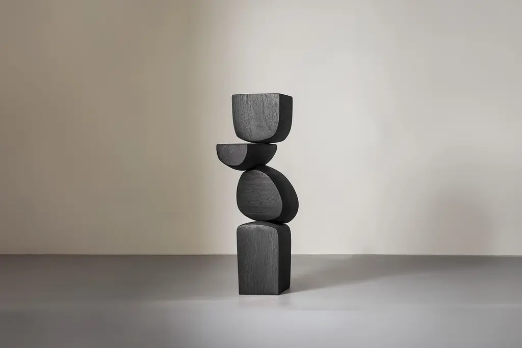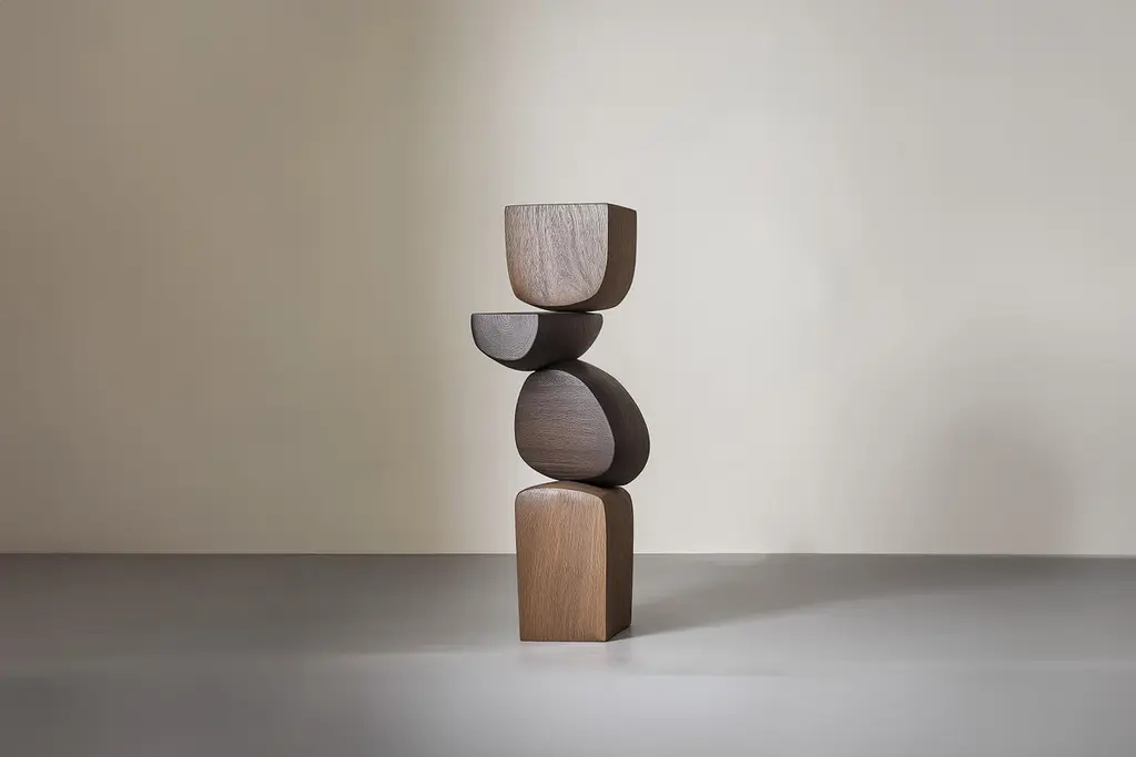 Lull No30 Tall Wooden Sculpture by Joel Escalona – Perfect for Minimalist Design———Balance and tension are at the core of these sculptures. The interplay between the smooth, rounded forms and solid, angular bases creates a delicate equilibrium that invites contemplation. Fragile elements seem to find strength in their very vulnerability, constantly negotiating their own stillness. The tension remains present, yet never descends into chaos, evoking a quiet pause, a moment of serenity in the motion of life.The juxtaposition of curved, pebble-like shapes against straight-edged bases mirrors the harmony between the organic and the geometric. These forms feel both natural and sculpted, as though shaped by the slow, deliberate hand of nature and the precision of craftsmanship. It’s as if these pieces rest in a moment of perfect balance—a pause between forces that seem at odds, yet together, create something deeper and more profound.This collection embodies a monumental idea—one that celebrates the subtle tension between fragility and endurance. Though the forms may appear delicate, their strength lies in resilience. Each sculpture stands tall and quietly powerful, offering a sense of solace in stillness, a reminder that stability can emerge from the most unlikely structures.These pieces explore the delicate dance between opposing forces, where solace and tension coexist in harmony. The most meaningful moments in life often come from these pauses, from embracing the quiet spaces between movement. These sculptures whisper a truth—that transformation often finds its roots in stillness, in the spaces between tension and release.Each sculpture is crafted from solid wood in our workshop in Mexico City, ensuring no two pieces are ever alike—not only in form, but also in the natural texture and tone of the wood itself. Just as no two trees are the same, each piece carries its own unique character, shaped by the grain and color variations of the wood. This natural diversity is what makes each sculpture truly one-of-a-kind. These works are made to order, allowing the time and care needed to ensure that every piece reflects its own individuality and beauty, celebrating the organic and the serene pause within the material.——NONO is a Mexican design brand with more than 10 years of experience dedicated to the production of interior furnishings, editions, and custom-made projects. At NONO, we create pieces of extraordinary beauty, accommodating the particular needs and tastes of each client with exclusive high-quality designs.————Some details to consider when placing an order with us:• Catalog images are digitally generated. Actual products may slightly vary in texture, grain, and final finish due to natural material differences. Despite these variations, our expertise ensures each piece maintains high quality and matches the intended design.• All of our products are made to order, and the lead time for standard products is estimated to be 9 to 12 weeks, plus shipping time. However, special pieces or sculptures may require a longer lead time.• We offer customization in dimensions and finish for all of our furniture pieces, which may result in additional charges.• We only facilitate freight services by a third party. The client is solely responsible for any associated import/export taxes, as well as any necessary customs paperwork.• We are not responsible for any damages that may occur during shipping or for any customs-related delays.