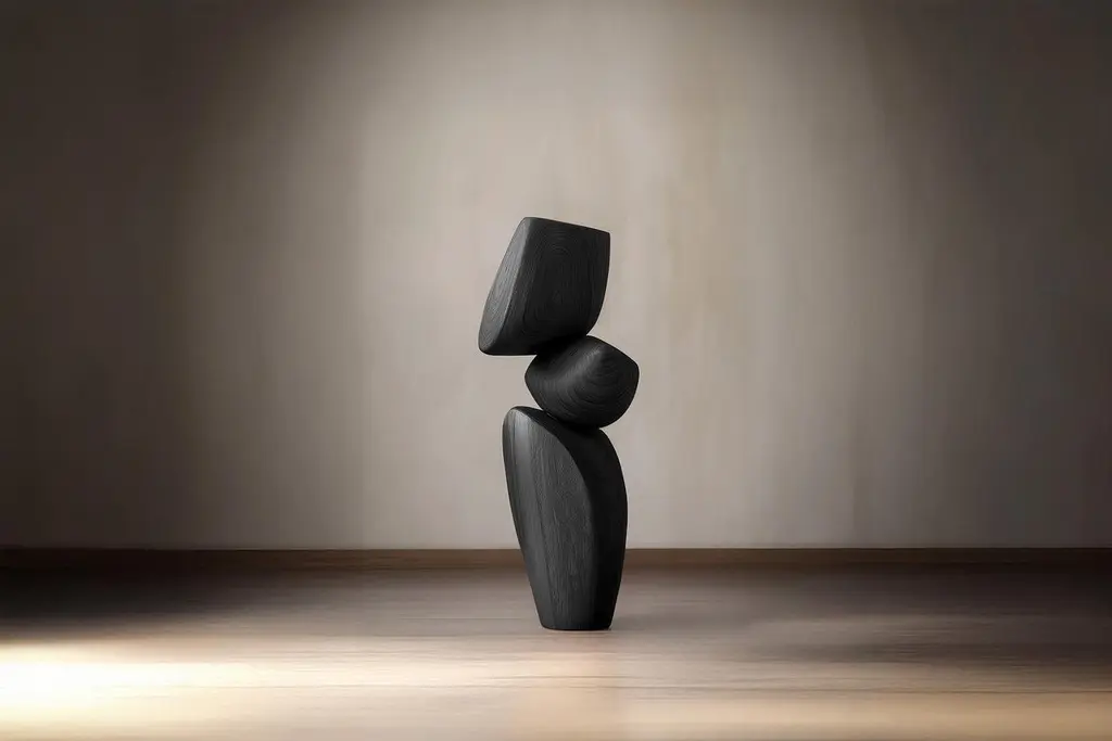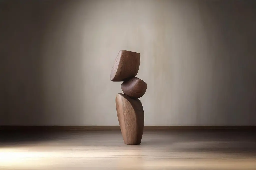 Lull No62 Contemporary Wooden Totem for Modern Interiors – Designed by Joel Escalona———Balance and tension are at the core of these sculptures. The interplay between the smooth, rounded forms and solid, angular bases creates a delicate equilibrium that invites contemplation. Fragile elements seem to find strength in their very vulnerability, constantly negotiating their own stillness. The tension remains present, yet never descends into chaos, evoking a quiet pause, a moment of serenity in the motion of life.The juxtaposition of curved, pebble-like shapes against straight-edged bases mirrors the harmony between the organic and the geometric. These forms feel both natural and sculpted, as though shaped by the slow, deliberate hand of nature and the precision of craftsmanship. It’s as if these pieces rest in a moment of perfect balance—a pause between forces that seem at odds, yet together, create something deeper and more profound.This collection embodies a monumental idea—one that celebrates the subtle tension between fragility and endurance. Though the forms may appear delicate, their strength lies in resilience. Each sculpture stands tall and quietly powerful, offering a sense of solace in stillness, a reminder that stability can emerge from the most unlikely structures.These pieces explore the delicate dance between opposing forces, where solace and tension coexist in harmony. The most meaningful moments in life often come from these pauses, from embracing the quiet spaces between movement. These sculptures whisper a truth—that transformation often finds its roots in stillness, in the spaces between tension and release.Each sculpture is crafted from solid wood in our workshop in Mexico City, ensuring no two pieces are ever alike—not only in form, but also in the natural texture and tone of the wood itself. Just as no two trees are the same, each piece carries its own unique character, shaped by the grain and color variations of the wood. This natural diversity is what makes each sculpture truly one-of-a-kind. These works are made to order, allowing the time and care needed to ensure that every piece reflects its own individuality and beauty, celebrating the organic and the serene pause within the material.——NONO is a Mexican design brand with more than 10 years of experience dedicated to the production of interior furnishings, editions, and custom-made projects. At NONO, we create pieces of extraordinary beauty, accommodating the particular needs and tastes of each client with exclusive high-quality designs.————Some details to consider when placing an order with us:• Catalog images are digitally generated. Actual products may slightly vary in texture, grain, and final finish due to natural material differences. Despite these variations, our expertise ensures each piece maintains high quality and matches the intended design.• All of our products are made to order, and the lead time for standard products is estimated to be 9 to 12 weeks, plus shipping time. However, special pieces or sculptures may require a longer lead time.• We offer customization in dimensions and finish for all of our furniture pieces, which may result in additional charges.• We only facilitate freight services by a third party. The client is solely responsible for any associated import/export taxes, as well as any necessary customs paperwork.• We are not responsible for any damages that may occur during shipping or for any customs-related delays.