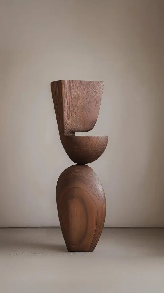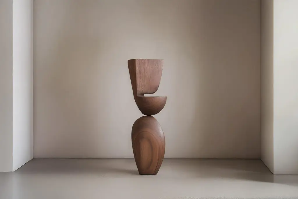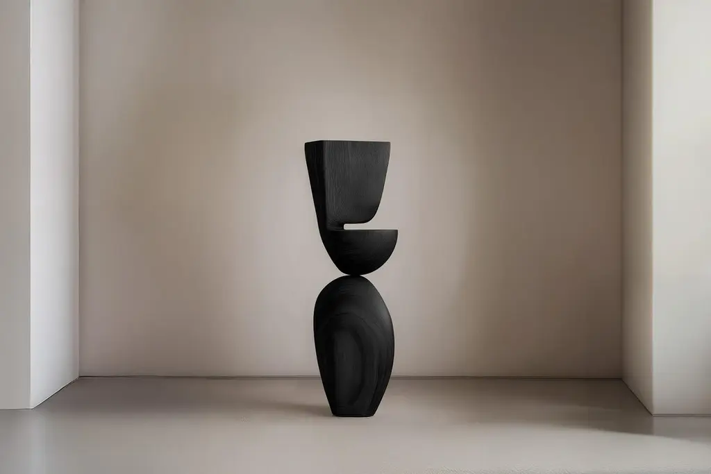 Lull No70 Wooden Sculpture – Abstract Form by Joel Escalona for Minimalist Homes———Balance and tension are at the core of these sculptures. The interplay between the smooth, rounded forms and solid, angular bases creates a delicate equilibrium that invites contemplation. Fragile elements seem to find strength in their very vulnerability, constantly negotiating their own stillness. The tension remains present, yet never descends into chaos, evoking a quiet pause, a moment of serenity in the motion of life.The juxtaposition of curved, pebble-like shapes against straight-edged bases mirrors the harmony between the organic and the geometric. These forms feel both natural and sculpted, as though shaped by the slow, deliberate hand of nature and the precision of craftsmanship. It’s as if these pieces rest in a moment of perfect balance—a pause between forces that seem at odds, yet together, create something deeper and more profound.This collection embodies a monumental idea—one that celebrates the subtle tension between fragility and endurance. Though the forms may appear delicate, their strength lies in resilience. Each sculpture stands tall and quietly powerful, offering a sense of solace in stillness, a reminder that stability can emerge from the most unlikely structures.These pieces explore the delicate dance between opposing forces, where solace and tension coexist in harmony. The most meaningful moments in life often come from these pauses, from embracing the quiet spaces between movement. These sculptures whisper a truth—that transformation often finds its roots in stillness, in the spaces between tension and release.Each sculpture is crafted from solid wood in our workshop in Mexico City, ensuring no two pieces are ever alike—not only in form, but also in the natural texture and tone of the wood itself. Just as no two trees are the same, each piece carries its own unique character, shaped by the grain and color variations of the wood. This natural diversity is what makes each sculpture truly one-of-a-kind. These works are made to order, allowing the time and care needed to ensure that every piece reflects its own individuality and beauty, celebrating the organic and the serene pause within the material.——NONO is a Mexican design brand with more than 10 years of experience dedicated to the production of interior furnishings, editions, and custom-made projects. At NONO, we create pieces of extraordinary beauty, accommodating the particular needs and tastes of each client with exclusive high-quality designs.————Some details to consider when placing an order with us:• Catalog images are digitally generated. Actual products may slightly vary in texture, grain, and final finish due to natural material differences. Despite these variations, our expertise ensures each piece maintains high quality and matches the intended design.• All of our products are made to order, and the lead time for standard products is estimated to be 9 to 12 weeks, plus shipping time. However, special pieces or sculptures may require a longer lead time.• We offer customization in dimensions and finish for all of our furniture pieces, which may result in additional charges.• We only facilitate freight services by a third party. The client is solely responsible for any associated import/export taxes, as well as any necessary customs paperwork.• We are not responsible for any damages that may occur during shipping or for any customs-related delays.